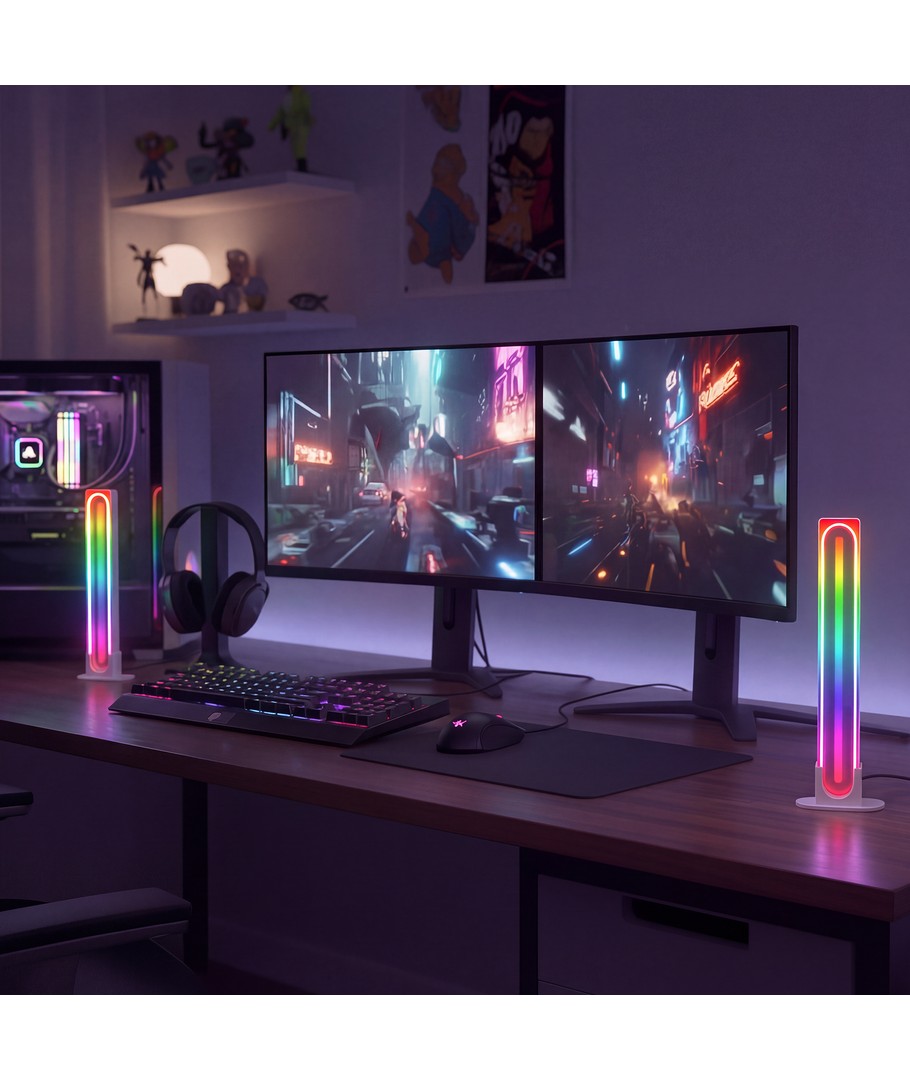 Upplev en värld av färger och stämning med våra 2 st. RGBIC infinite ambient light bar i vitt, som kombinerar avancerad teknik med stilren design.