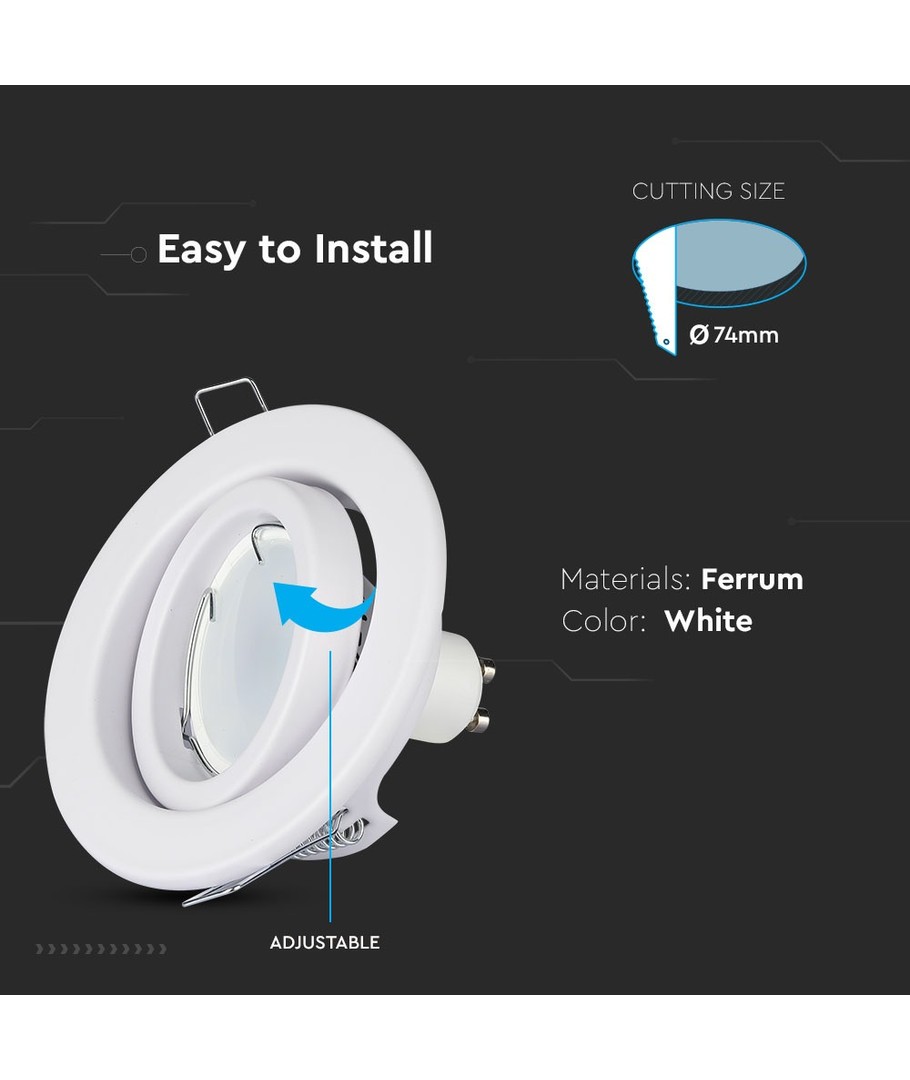 Detta stilfulla MR16 eller GU10 Downlight-kit är designat för att ge dig flexibilitet och elegans i din belysningsmiljö utan att kompromissa med funktionalitet.