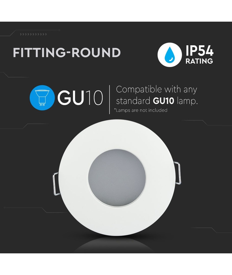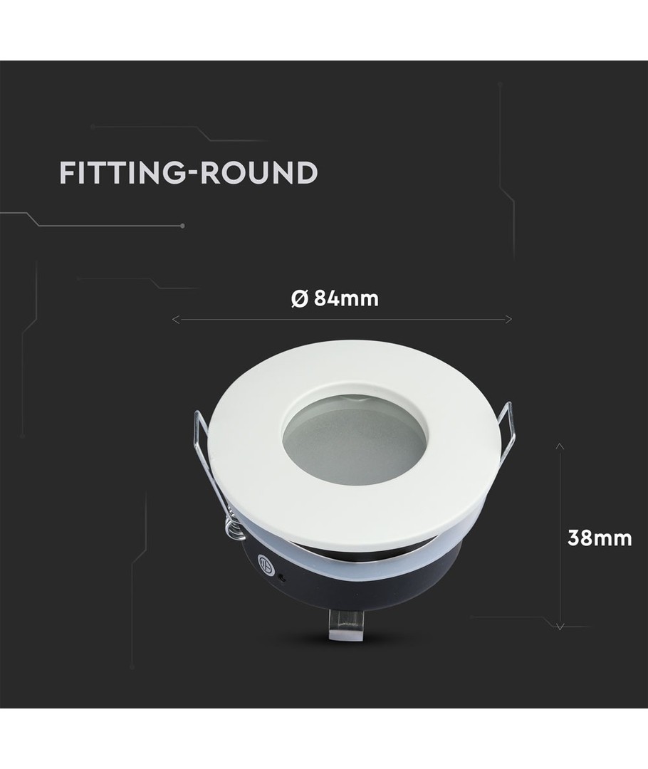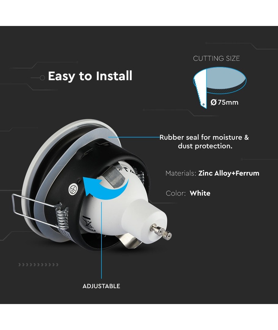 Hål: Ø7,5 cm, Mål: Ø9,1 cm, matt vit, välj MR16 eller GU10 sockel