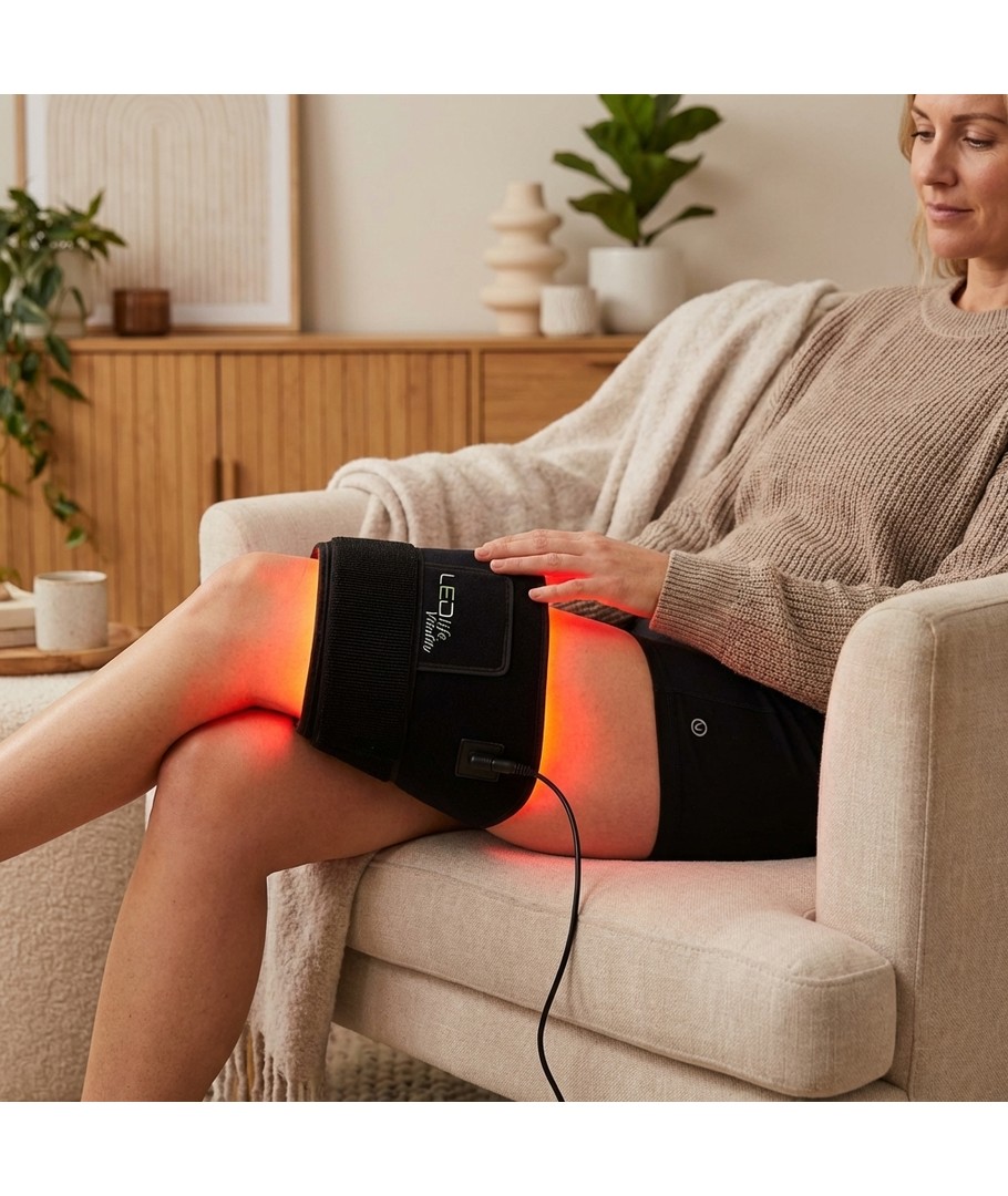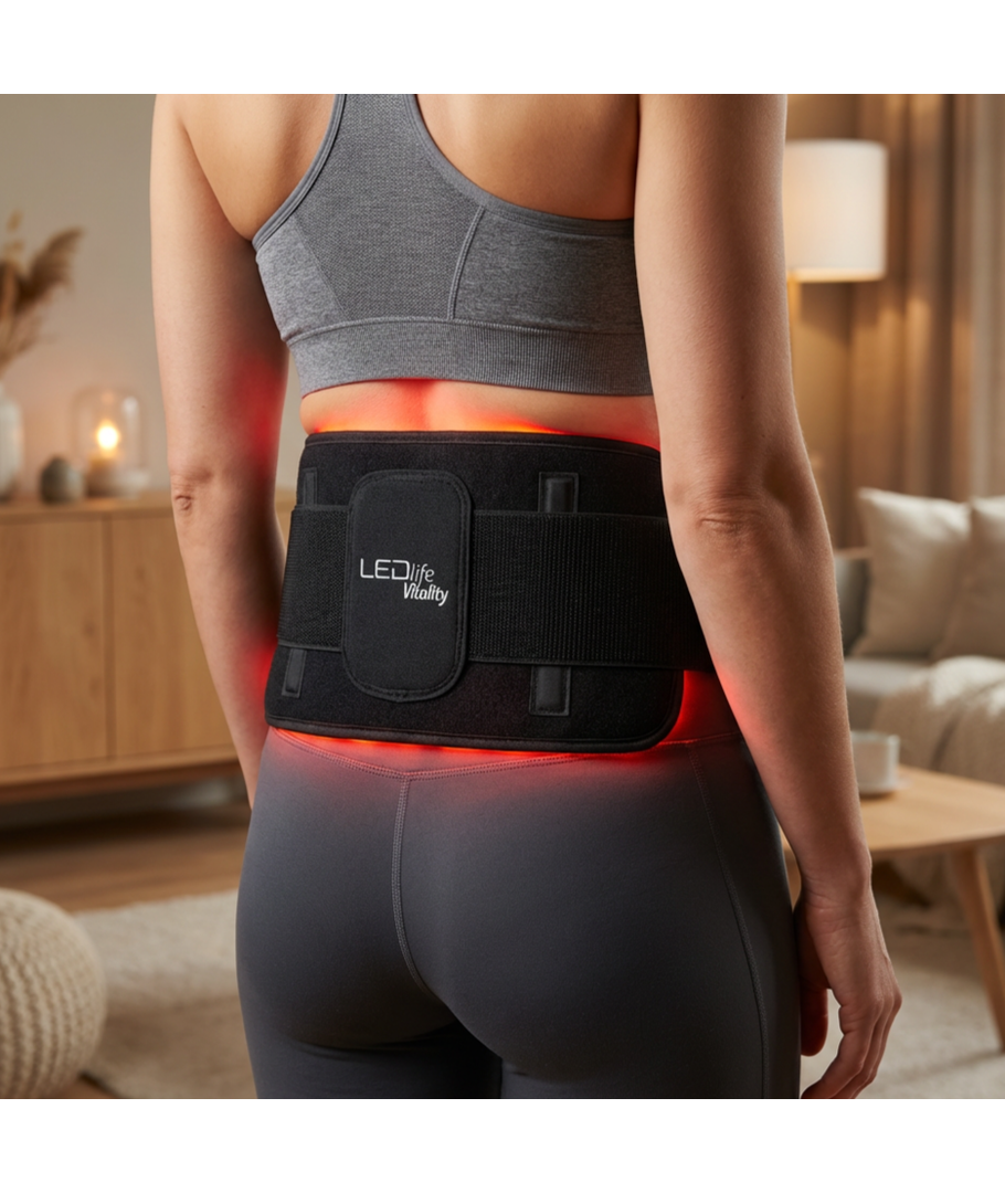 Detta ljusterapibälte är utvecklat för dig som vill ha ett skonsamt och effektivt sätt att stödja kroppen. Oavsett om det är efter träning, perioder av obehag eller bara en lång arbetsdag, är bältet noggrant designat för att kunna täcka allt! Med sin mångsidiga design och 2 olika bälteslängder kan bältet användas på allt från ländrygg till knän, nacke och axlar.