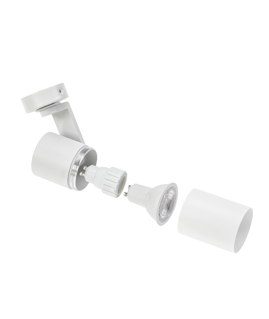 Denna eleganta vägg/takmonterade spot i vit finish är designad för att ge ditt rum en modern touch och optimera belysningen med stor flexibilitet.