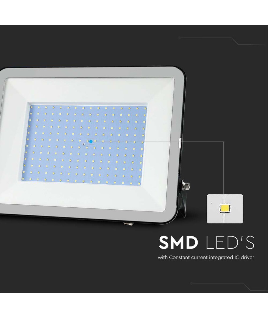 V-Tac 300W LED strålkastare är perfekt för att upplysa områden som kräver hög ljusstyrka och ett naturligt ljus utan blå eller gula toner.