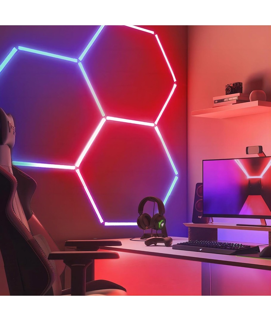 Med Hexagon RGBIC 3 fält komplett set får du en allt-i-ett belysningslösning som kombinerar teknologi och design för att skapa den perfekta atmosfären i vilket rum som helst.