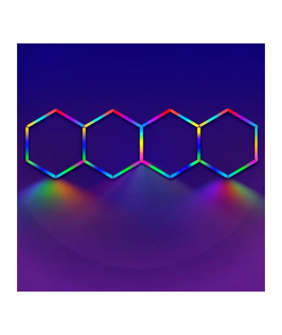 Hexagon RGBIC 4 fält komplett set - 70W är det ideala belysningsvalet för dem som vill lägga till en touch av personlighet till sitt rum med en kraftfull och färgglad ljusupplevelse.