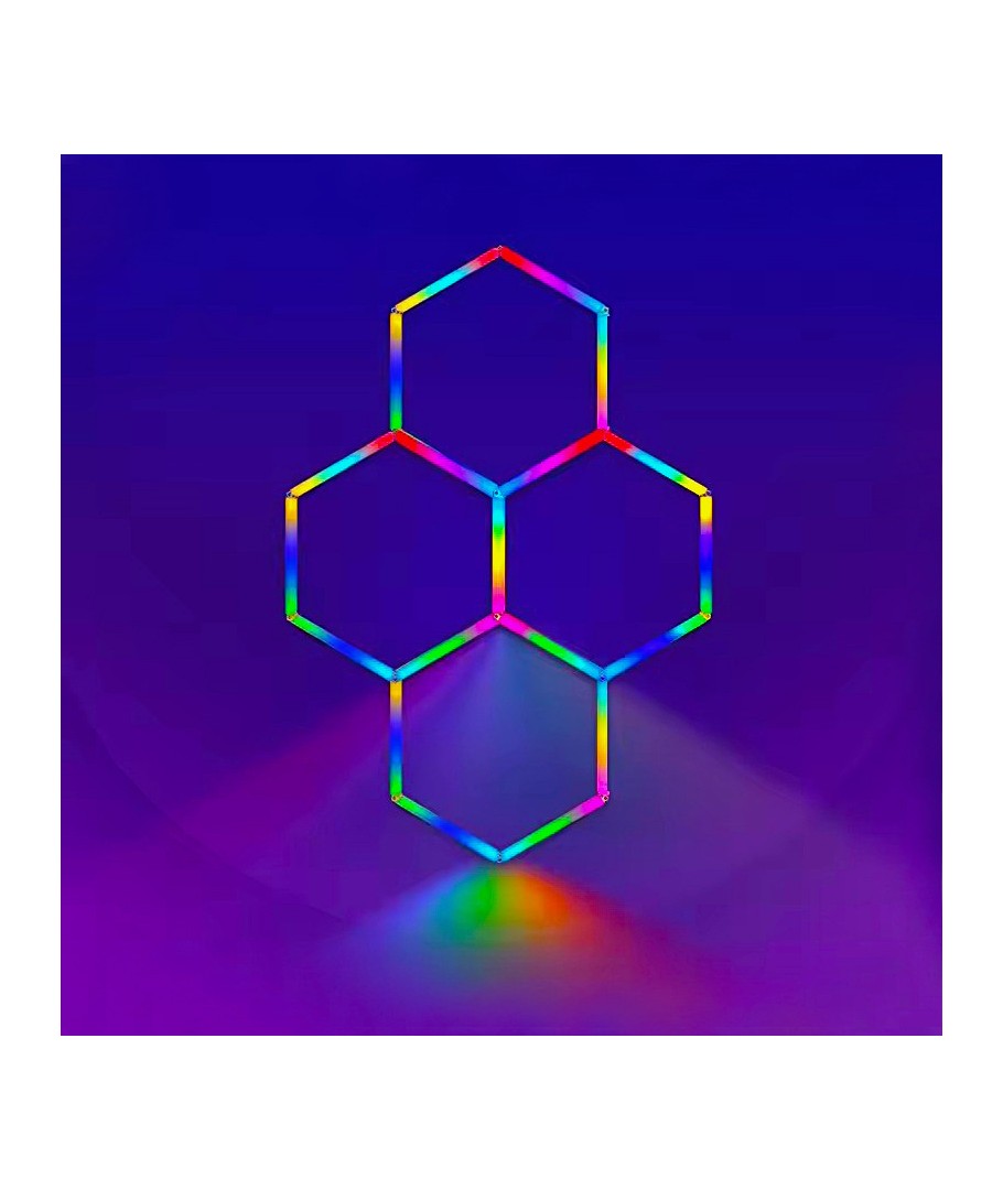 Hexagon RGBIC 4 fält komplett set - 64W är det ideala belysningsvalet för dem som vill lägga till en touch av personlighet till sina rum med en kraftfull och färgglad ljusupplevelse.