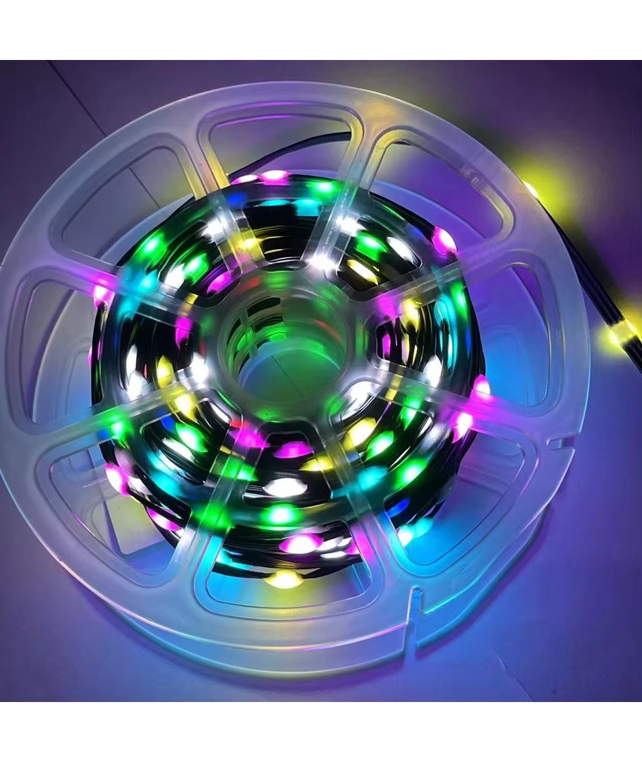 Lamporna kan lysa både fasta färger samt skapa löpljus/regnbåge (RGBIC)