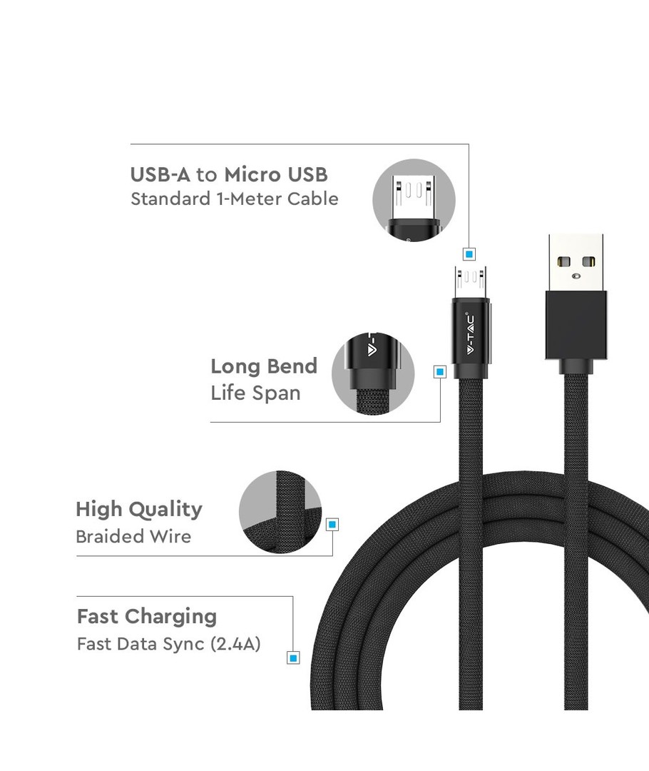 Upplev mångsidighet och hållbarhet med vår MicroUSB 1m tygkabel i Svart, designad för att möta både laddnings- och datatransmissionsbehov.