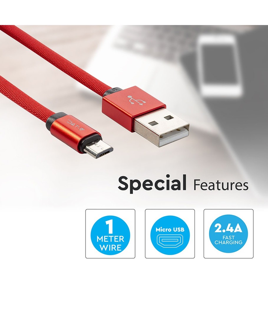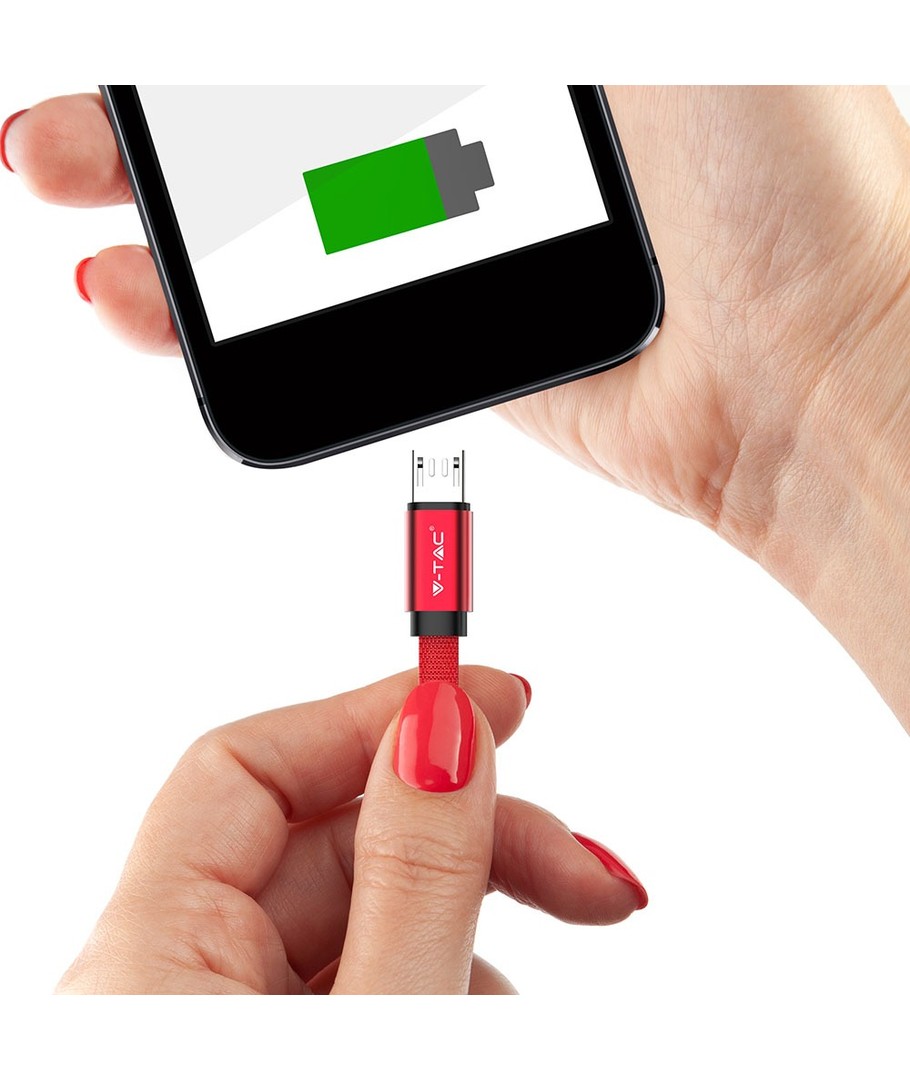 Upptäck den mångsidiga och stiliga MicroUSB-kabeln 1m röd - perfekt för både dataöverföring och laddning med sin unika flätade bomullsbeläggning.
