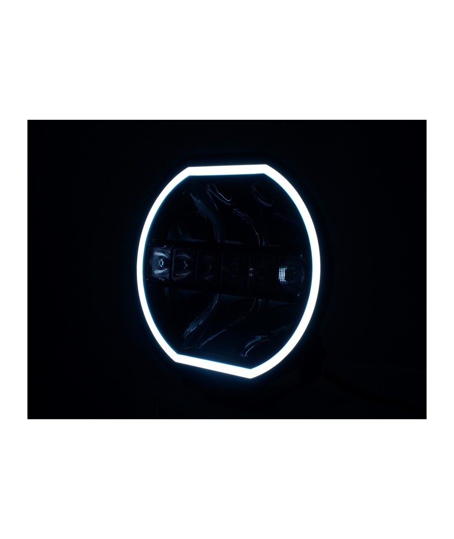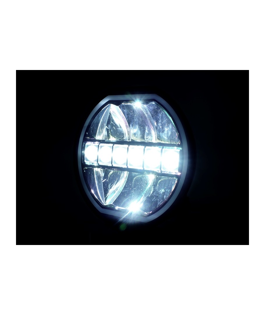 Prolumo HEXA är E-godkända runda LED-helljus med dubbla/dubbla inbyggda LED-positionsljus som lyser hela vägen runt ljuskanten i en "neoneffekt".