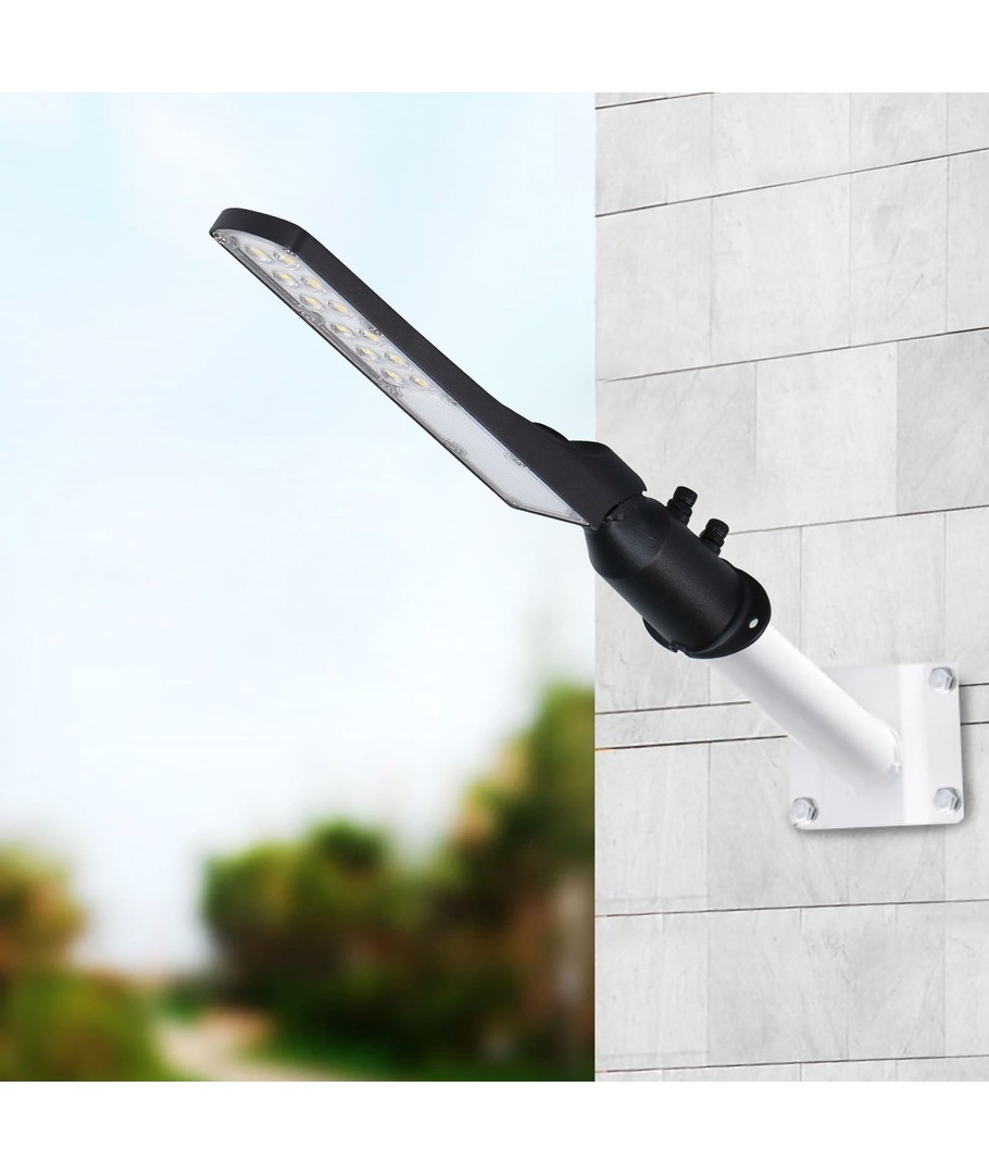 Denna LED-gatlampa kombinerar modern teknik med utmärkt design för att leverera överlägsen belysning för alla dina utomhusbehov.