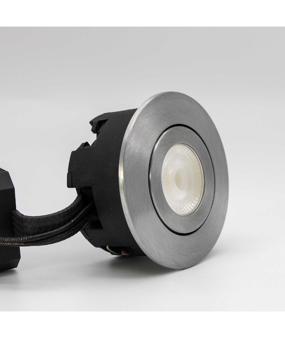 Denna DimTone LED indbygningsspot i borstat stål har en mycket låg inbyggnadshöjd på endast 38mm. Får monteras direkt i isolering och mot ångspärr. Spotten är på endast 6,5W, har en färgåtergivning på Ra95 och levereras med 60° spridningsvinkel på ljuskällan, för direkt anslutning till 230V via kopplingsbox.
