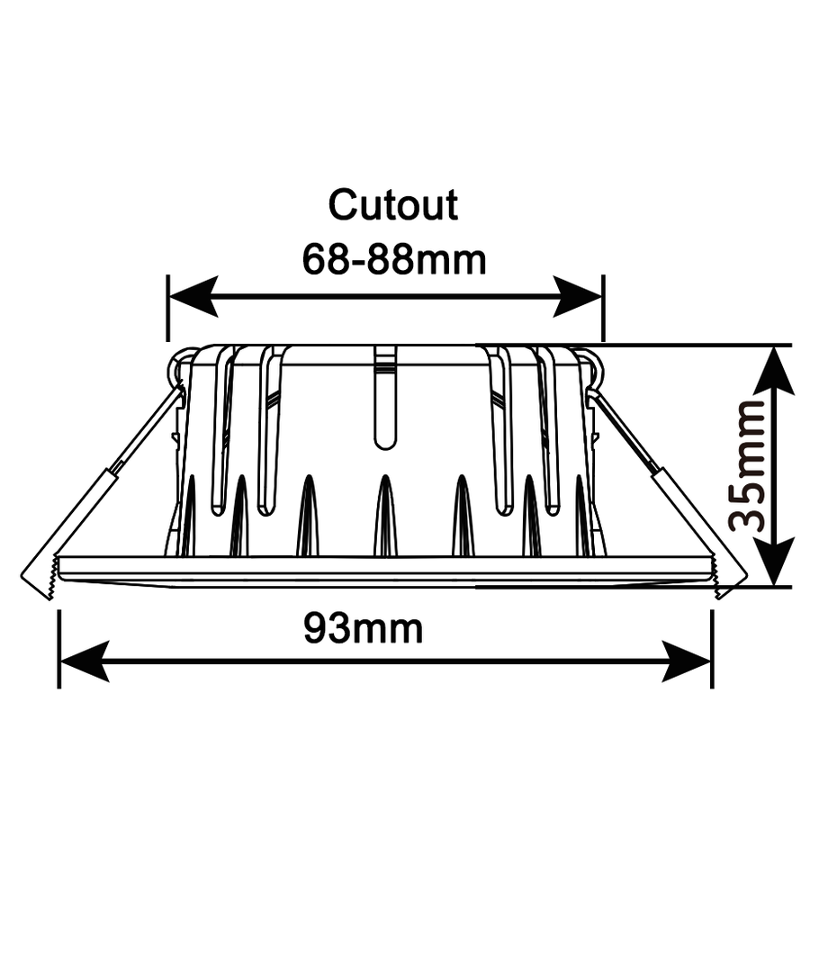 Passar perfekt i hålstorlekar på 68 mm och har dimensionerna 35 x Ø93 mm, vilket gör installationen både snabb och enkel. Den integrerade ljuskällan säkerställer att du inte behöver oroa dig för att byta lampor ofta.