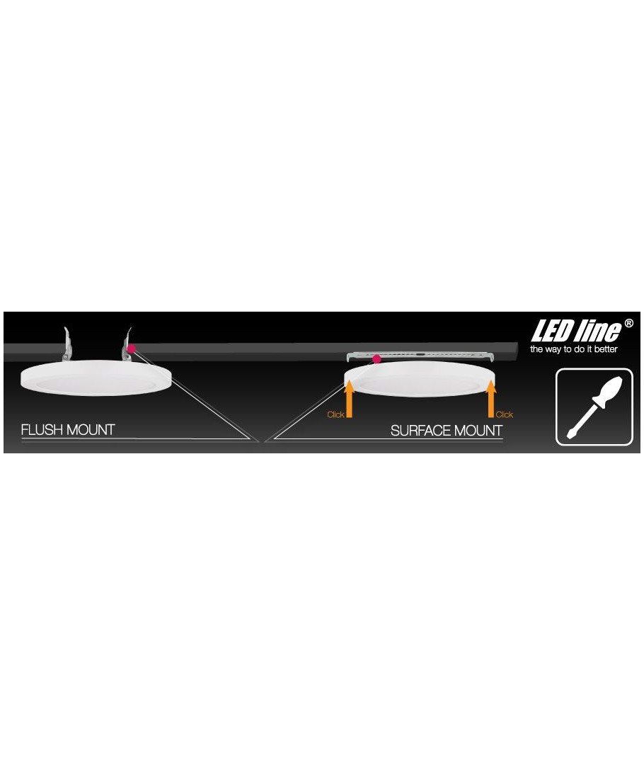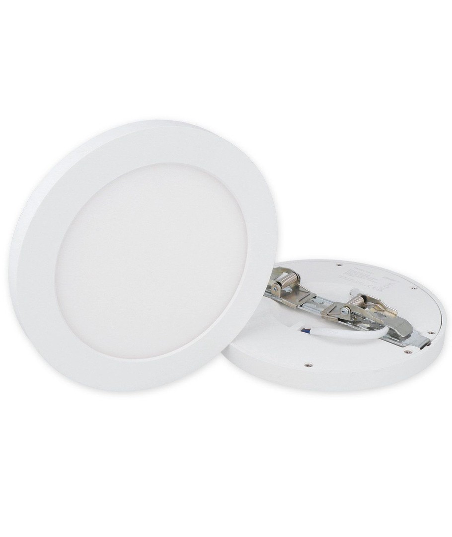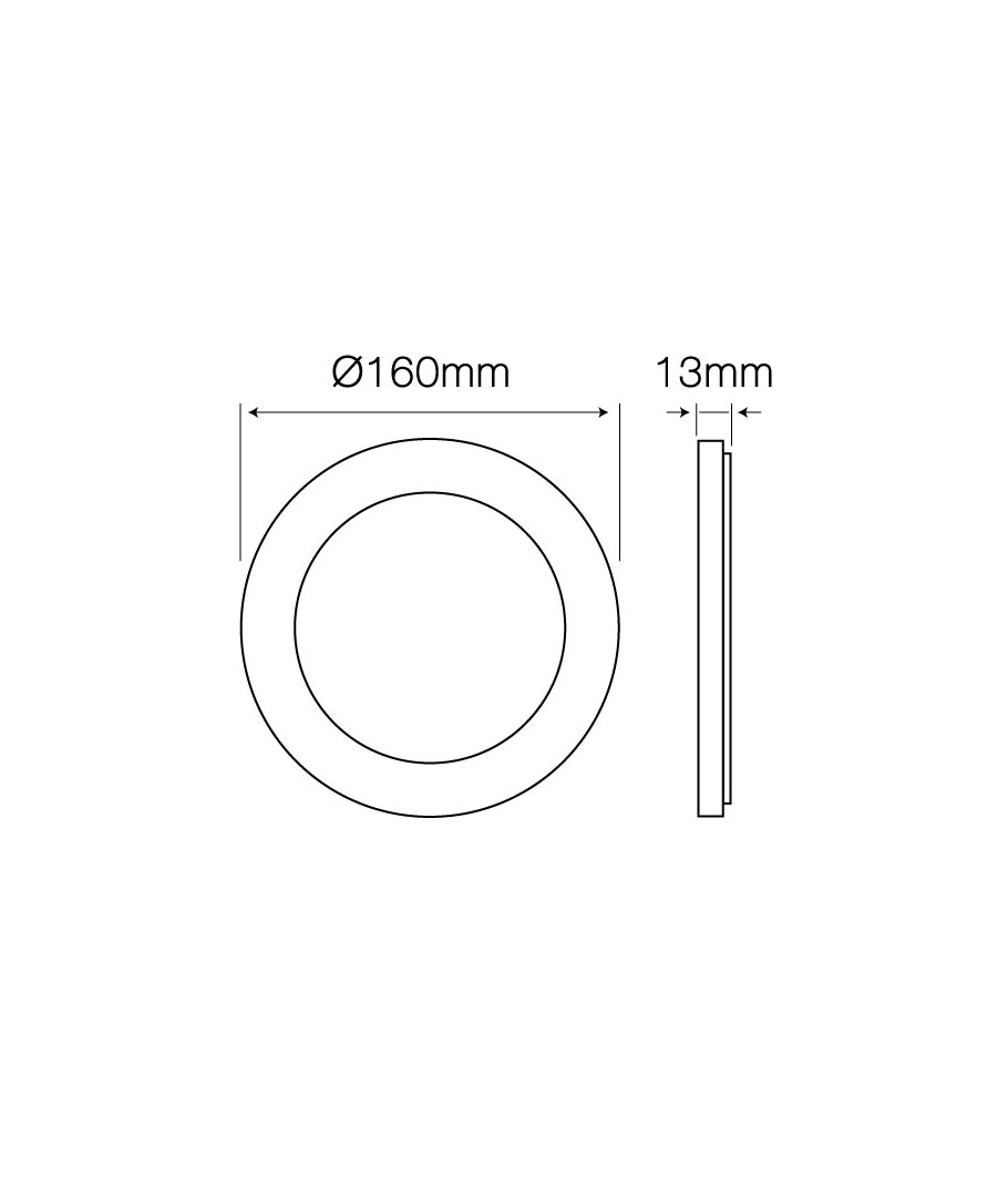 Komplett rund slim LED-panel Ø160 mm på 12W och i 4000K som levereras med avtagbar utanpåliggande ram, så att den både kan monteras utanpåliggande och fällas in i taket.