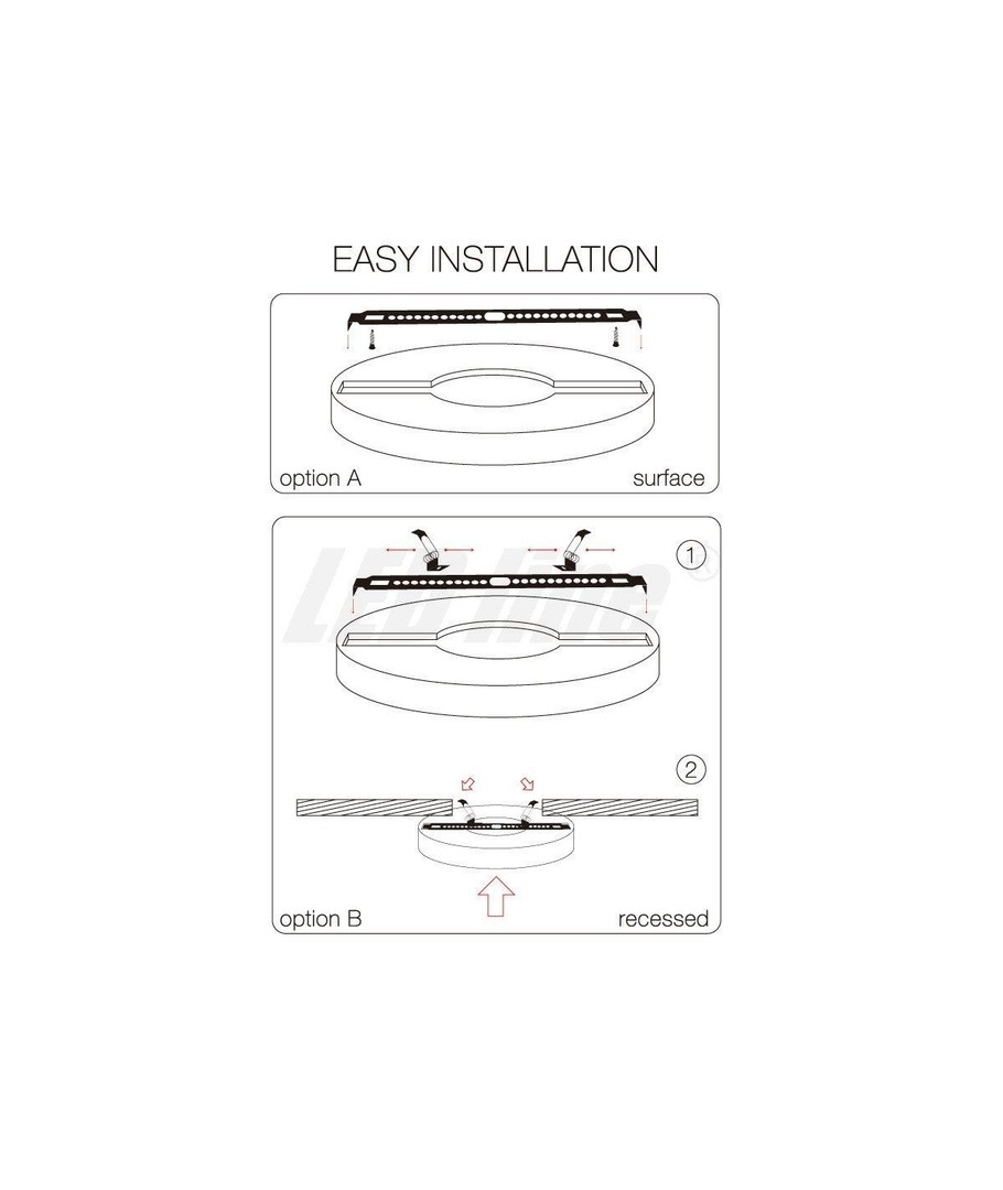Monteringsclips kan flyttas längs monteringsfästet, så att produkten passar i de flesta befintliga monteringshål. Tillverkaren lämnar 3 års garanti på denna produkt. Möjliga installationsmetoder: infälld och utanpåliggande. Installationsmetoden kan anpassas efter behov.