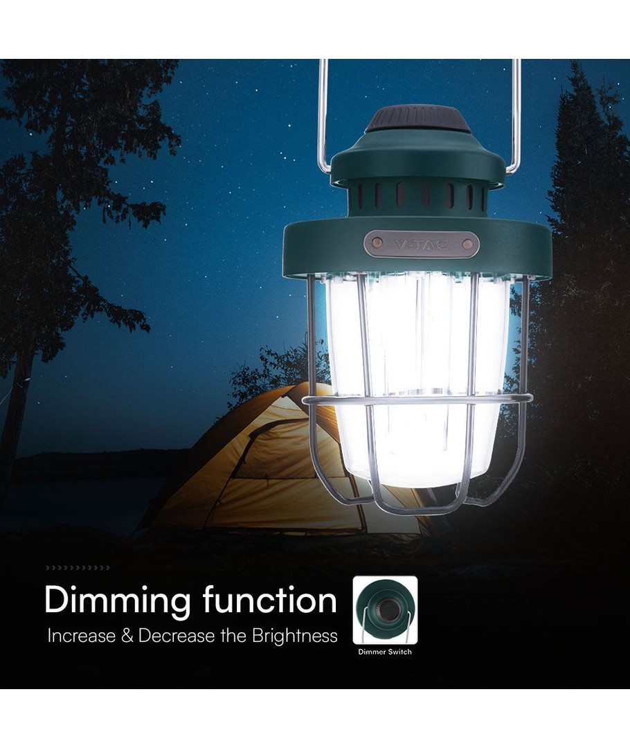 Huvudfunktioner:Denna campinglampa är utformad för att tillgodose alla dina behov oavsett om du är ute på äventyr eller arbetar på en plats med ombyte av väder. Med sin dimbara funktion kan ljusstyrkan enkelt justeras för att passa stämningen eller platsen där den används.