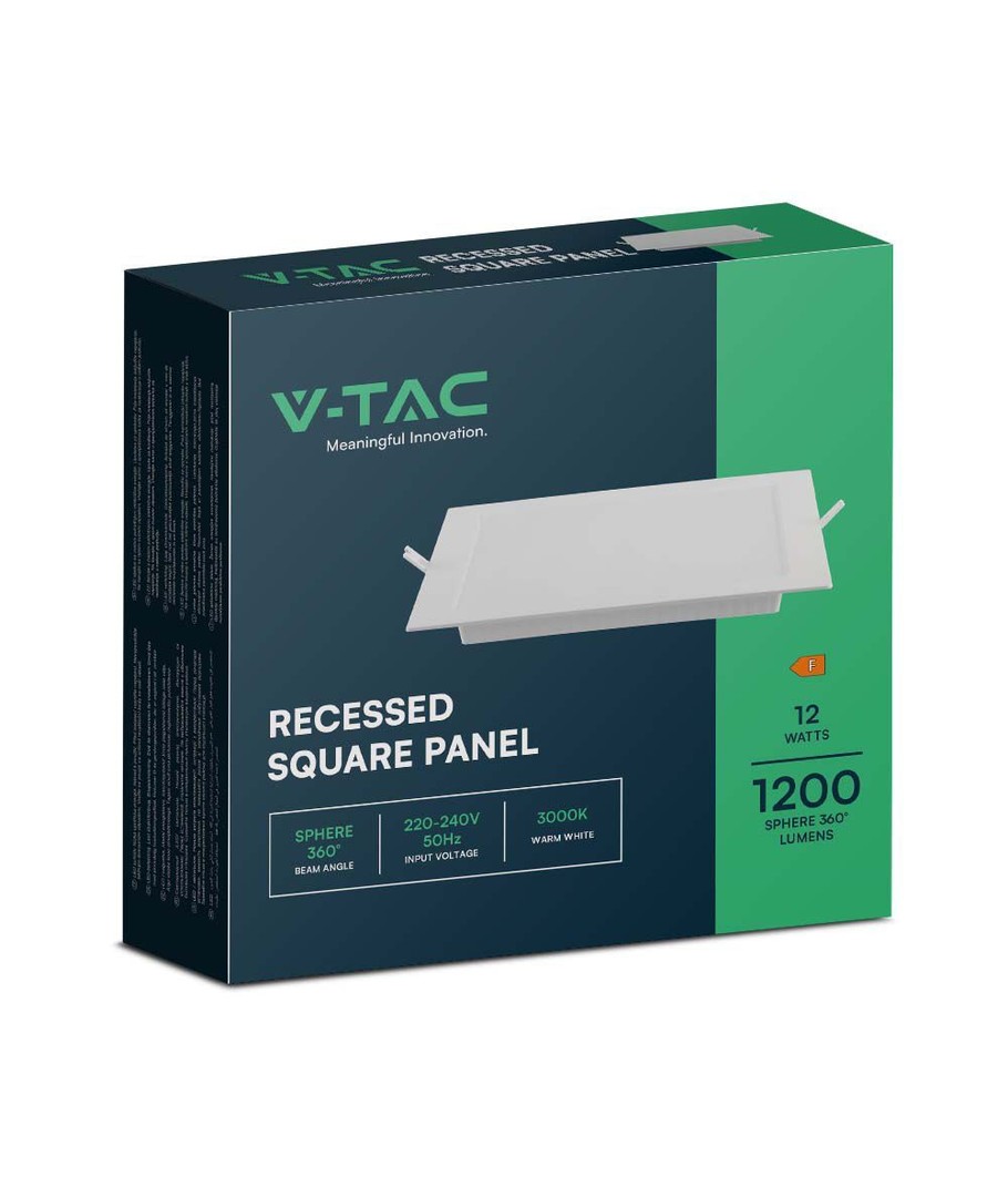 Med en imponerande ljusstyrka på 1200 lumen och en spridningsvinkel på 120 grader sprider V-Tac 12W LED downlight ljuset jämnt över hela rummet. Dess höga ljuskvalitet säkerställs av ett RA-värde på 80-85, vilket garanterar att färger återges naturligt och vackert.