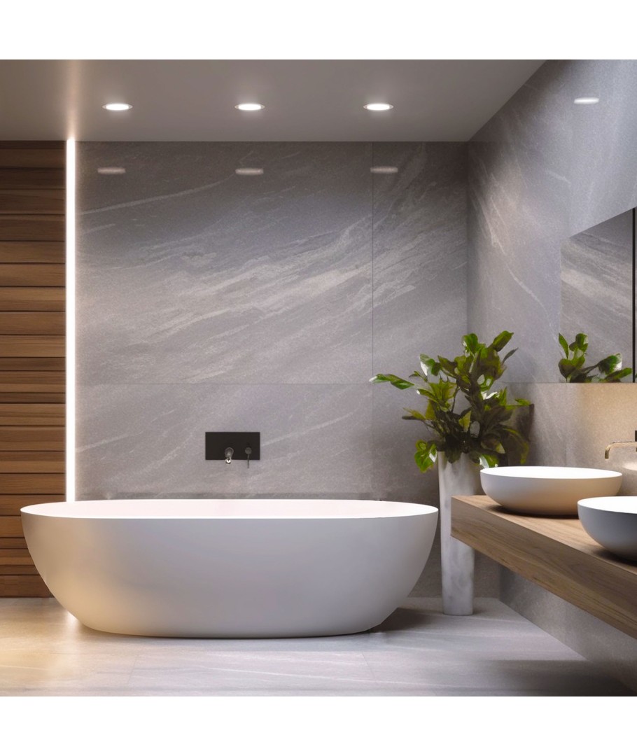 Den här inbyggnadsspoten är en idealisk lösning för dig som söker pålitlig och stänktät belysning för hemmet eller kommersiella utrymmen. Med dess stilrena design och vita kant passar den in i de flesta inredningar.