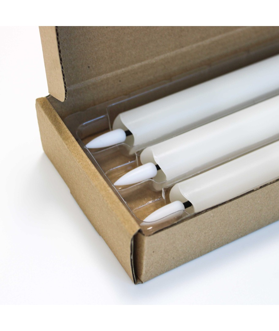 Upplev den mysiga atmosfären från levande ljus utan risken för öppen eld med våra 3-pack vita LED-ljus med flameffekt. Dessa eleganta kronljus passar perfekt i dina vanliga ljusstakar och erbjuder en avslappnande belysning i vilket rum som helst.