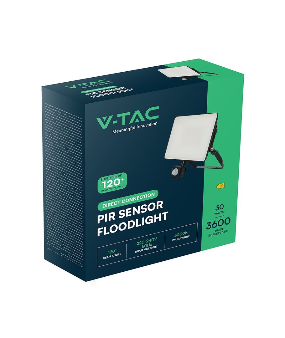 V-Tac 30W LED sensorstrålkastare är den idealiska lösningen för dem som önskar en pålitlig och energieffektiv belysning med enkel installation och automatisk funktionalitet.
