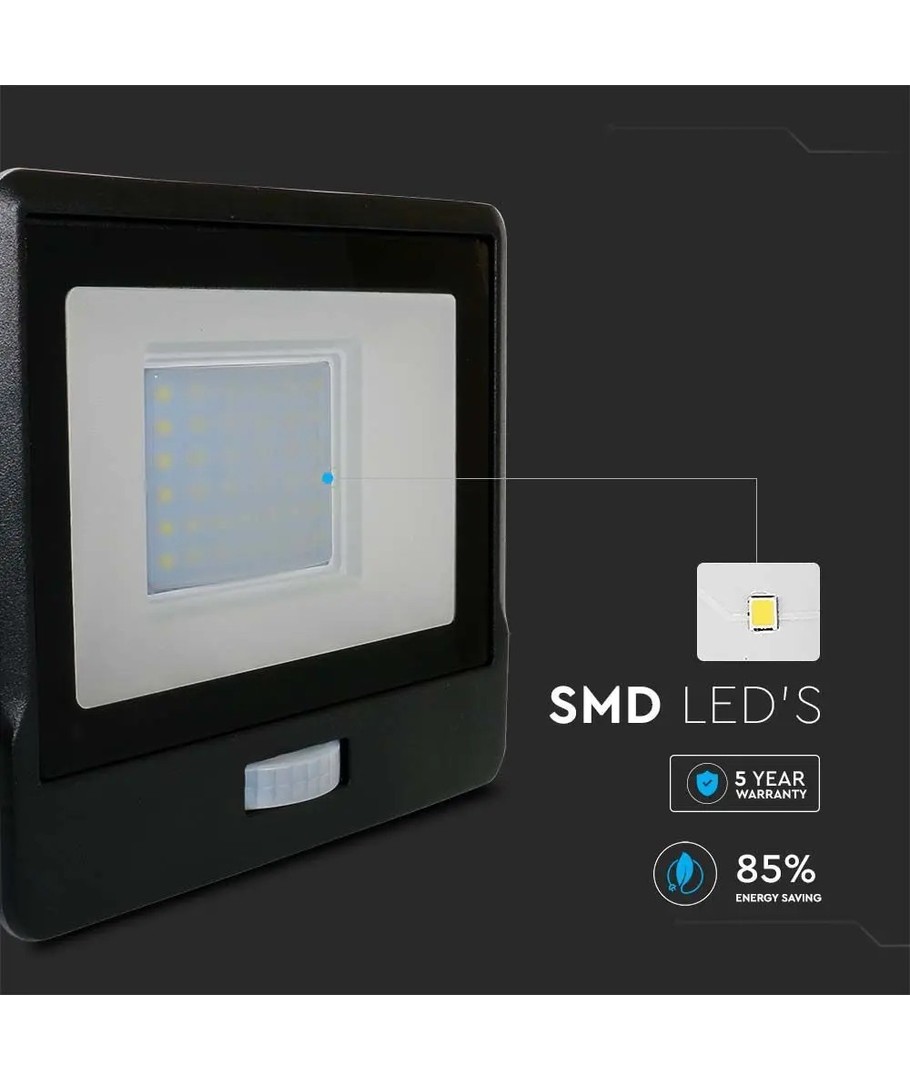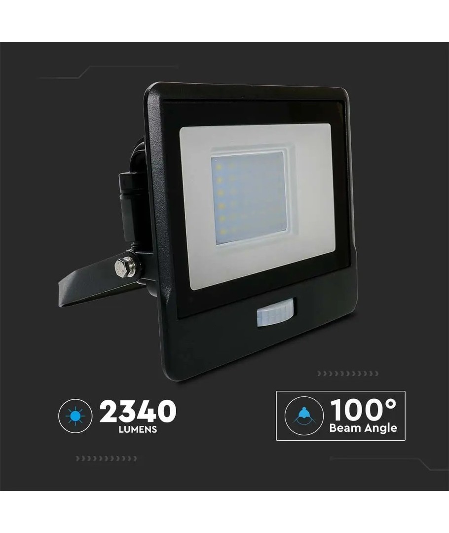 Denna strålkastare erbjuder en effekt på 30W och ansluts smidigt till 230V. Med en ljusstyrka på 2340 lumen och en bred spridning på 100 grader, säkerställer den en jämn och effektiv fördelning av ljuset i rummet eller området. Dessutom har strålkastaren en hög ljuskvalitet med ett RA-värde på 80-85, vilket garanterar ett naturligt och vackert ljus som troget återger alla färger.