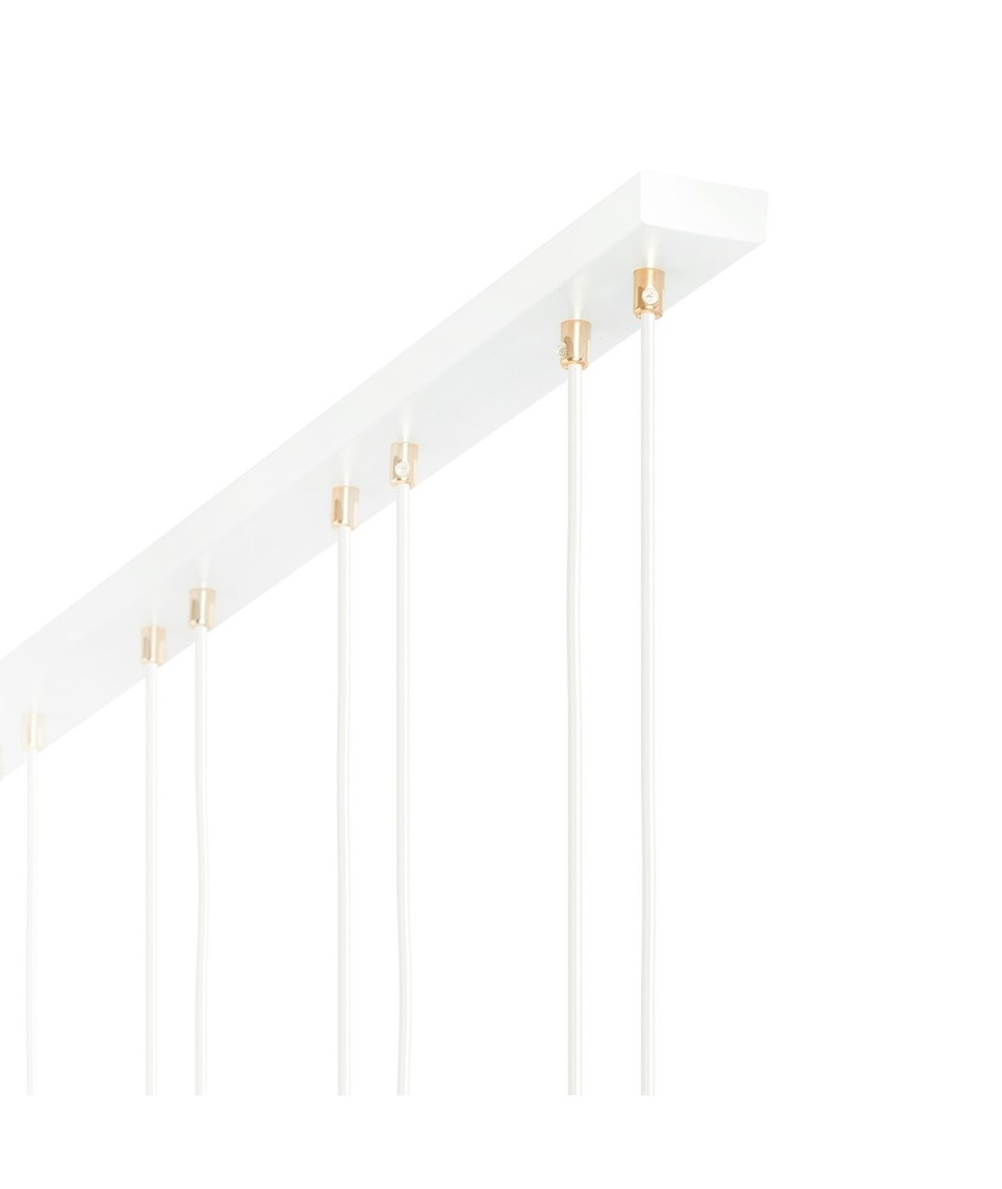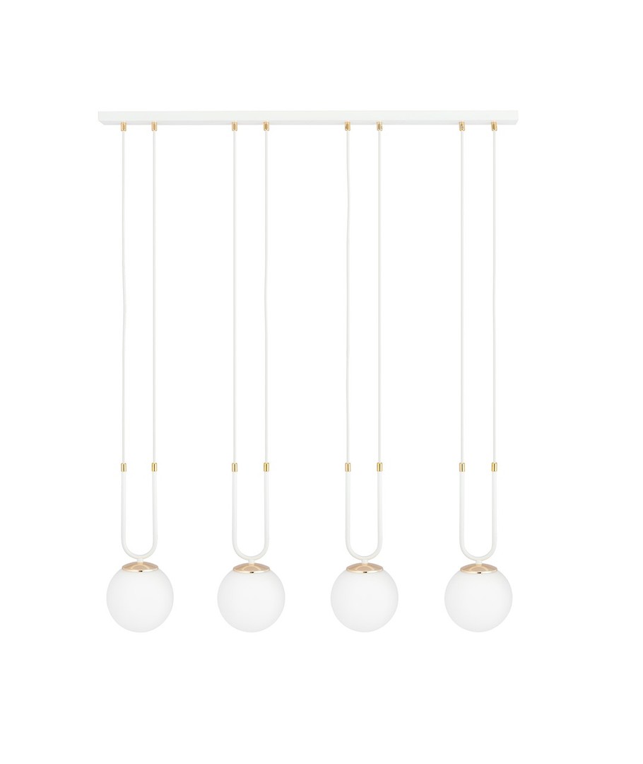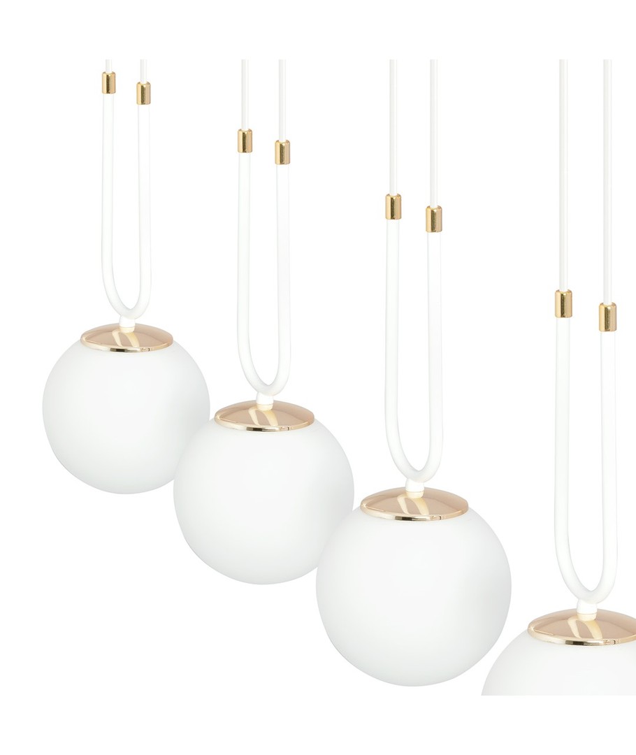 De delikata glaskulorna i vitt ger en mjukhet och grace, medan gyllene detaljer tillför en livlig och strålande dimension.
