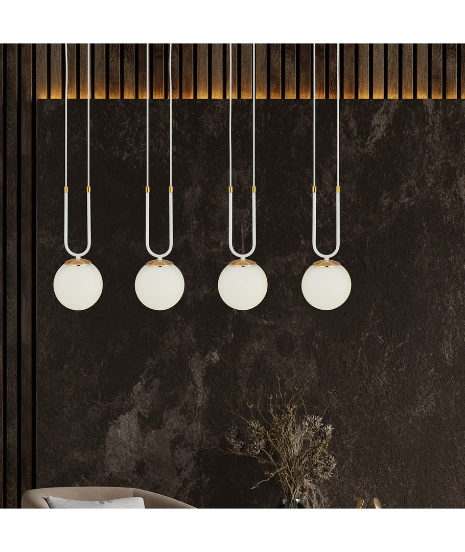 Glam 4 Vit/Opal pendellampa från den eftertraktade GLAM-serien kombinerar en modern estetik med den populära glamour-stilen.