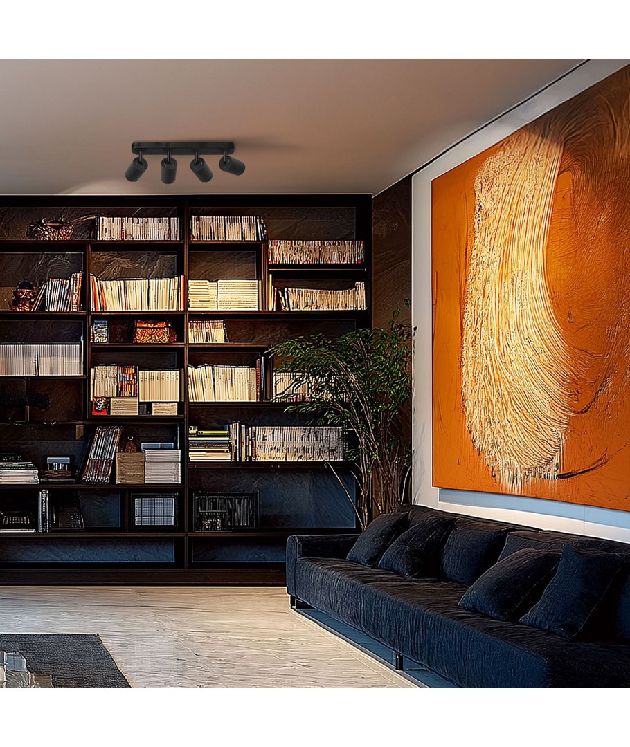 Den stilrena taklampan med 4 spots är en elegant belysningslösning för varje modernt hem som söker flexibilitet och funktionalitet.