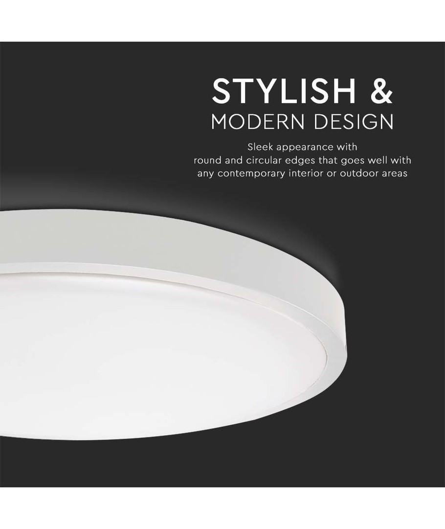 Med måtten 55 x Ø29,5 cm och en diskret vit kant smälter armaturen lätt in i alla typer av inredningar. Denna takarmatur har en IP44-klassificering som gör den lämplig för utrymmen med fuktig luft och vattenstänk, såsom badrum.