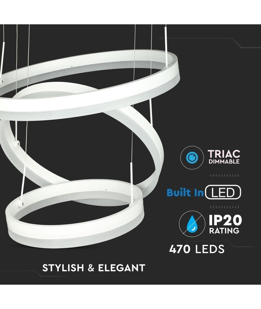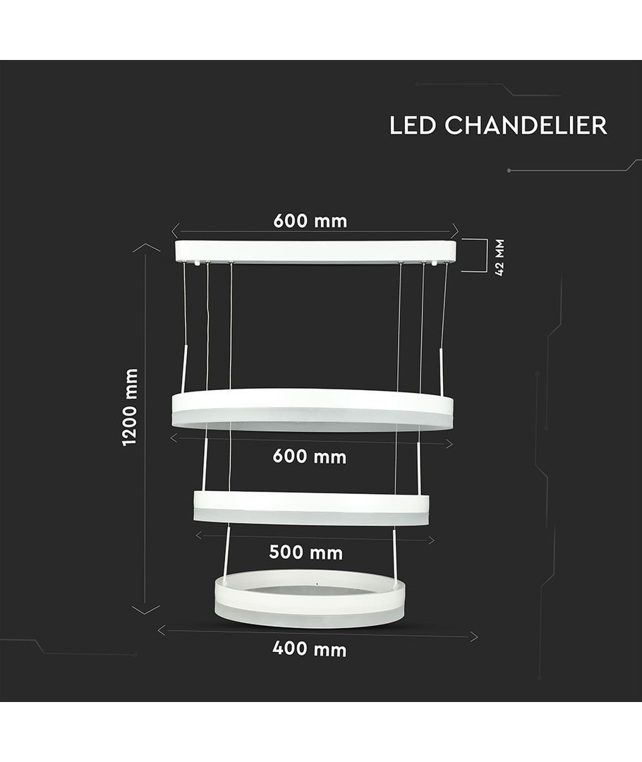 Upplev enastående belysning och elegant design med denna ljuskrona som kombinerar innovation och stil. Den här ljuskronan är en perfekt blandning av funktionalitet och estetik, vilket gör den till ett utmärkt komplement till ditt hem eller kontor. Med sina tre distinkta ringar och moderna dimbara funktion är den skapad för att imponera och anpassa sig till olika stämningar och behov.