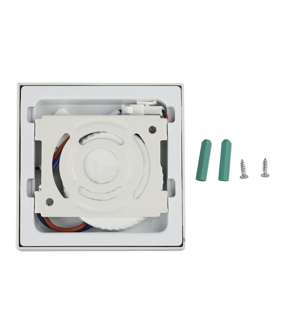 Denna moderna och eleganta LED taklampa är utformad för att passa smidigt in i alla rum med sin diskreta vita kant och kompakta design. Den mäter endast 14 x 14 cm med en höjd på blygsamma 2,4 cm, vilket gör den till en perfekt lösning för dem som letar efter både stil och funktion.