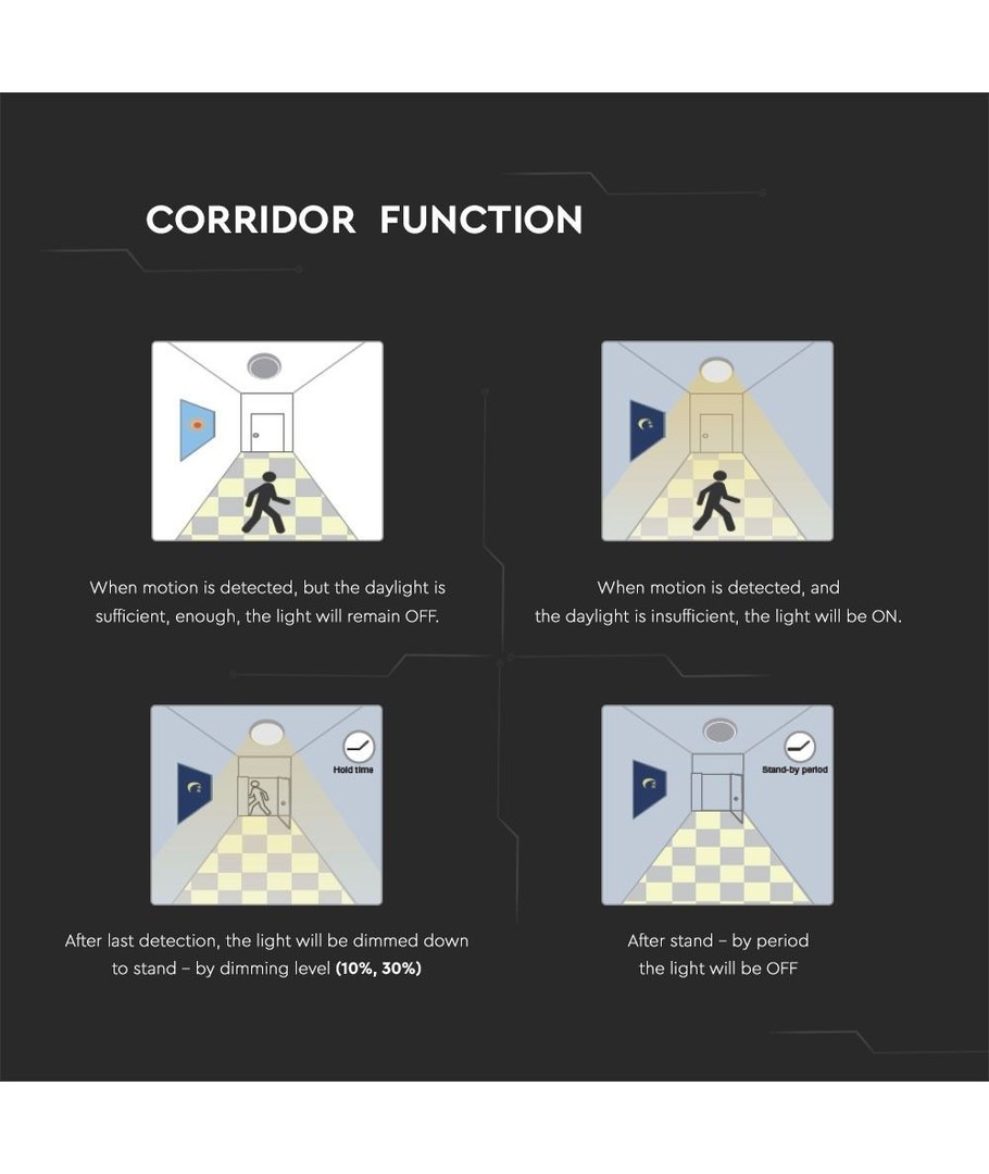 Ljusstyrka och Kvalitet:Denna LED-takarmatur är designad för att erbjuda en långvarig och tillförlitlig belysningslösning, kombinerad med användarvänlig sensorstyrning för modern belysningskomfort. En perfekt kombination för både hem och professionella miljöer.
