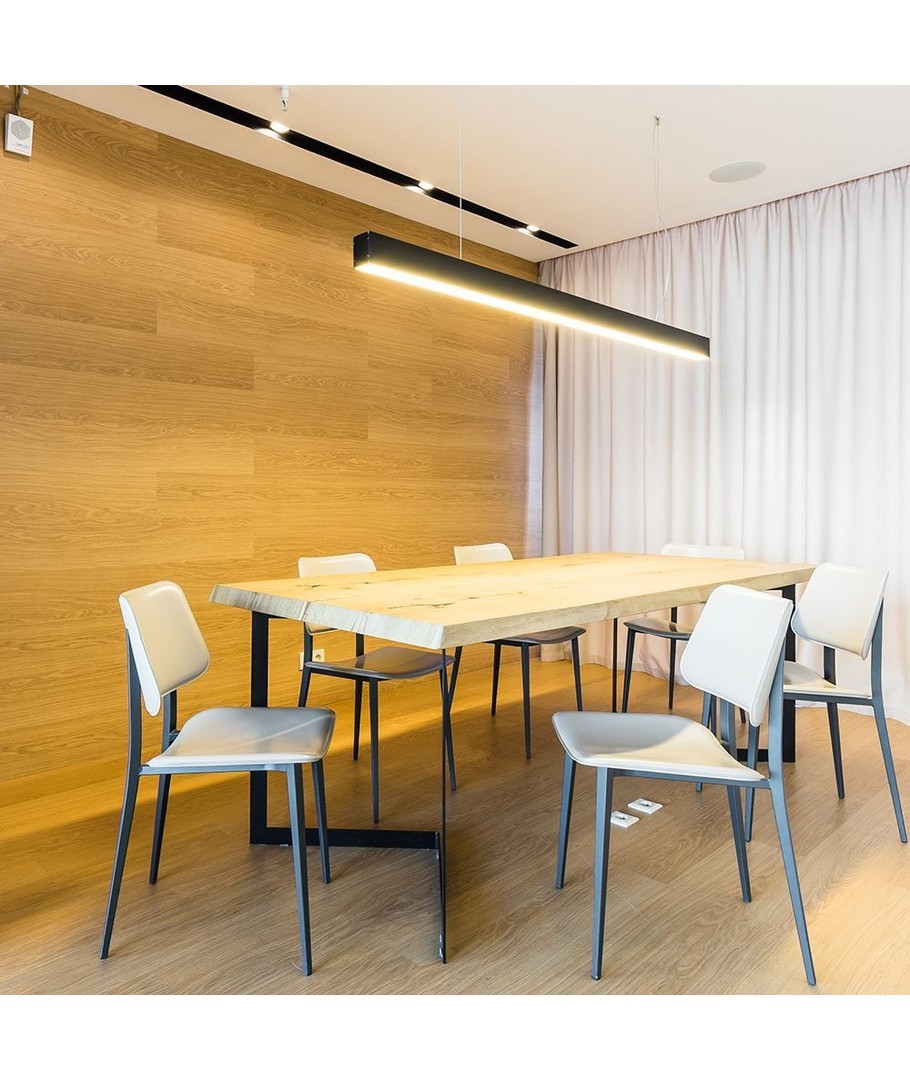 Upplev en perfekt kombination av modern design och avancerad teknik med denna LED-hängande takarmatur. Med eleganta dimensioner på 1200 x 65 x 50 mm och integrerad ljuskälla, är denna armatur idealisk för både kontor och hem som vill ha en stilren, samt energisnål belysningslösning.