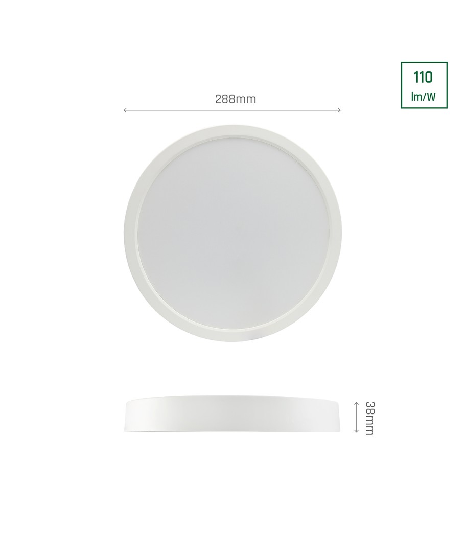 Denna armatur har en effekt på 24W och ska anslutas till 230V. Den är utformad för att ge ett klart och jämnt ljusflöde, tack vare en ljusstyrka på 2650 lm och en bred ljusspridning på 120 grader.