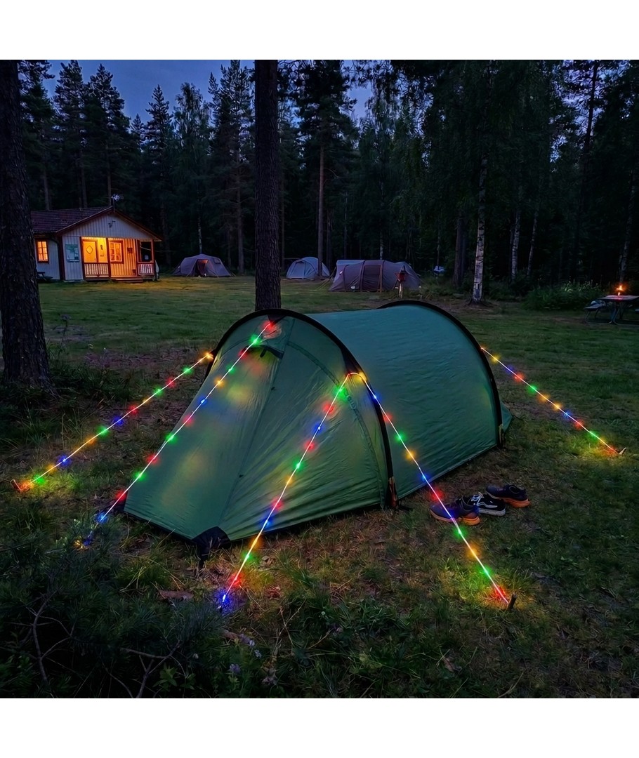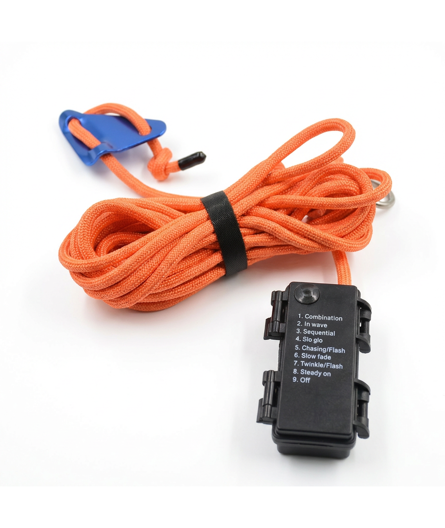 Orange rep med RGB-ljus passar för både praktiska och dekorativa ändamål, perfekt för utomhusaktiviteter eller kreativa projekt.