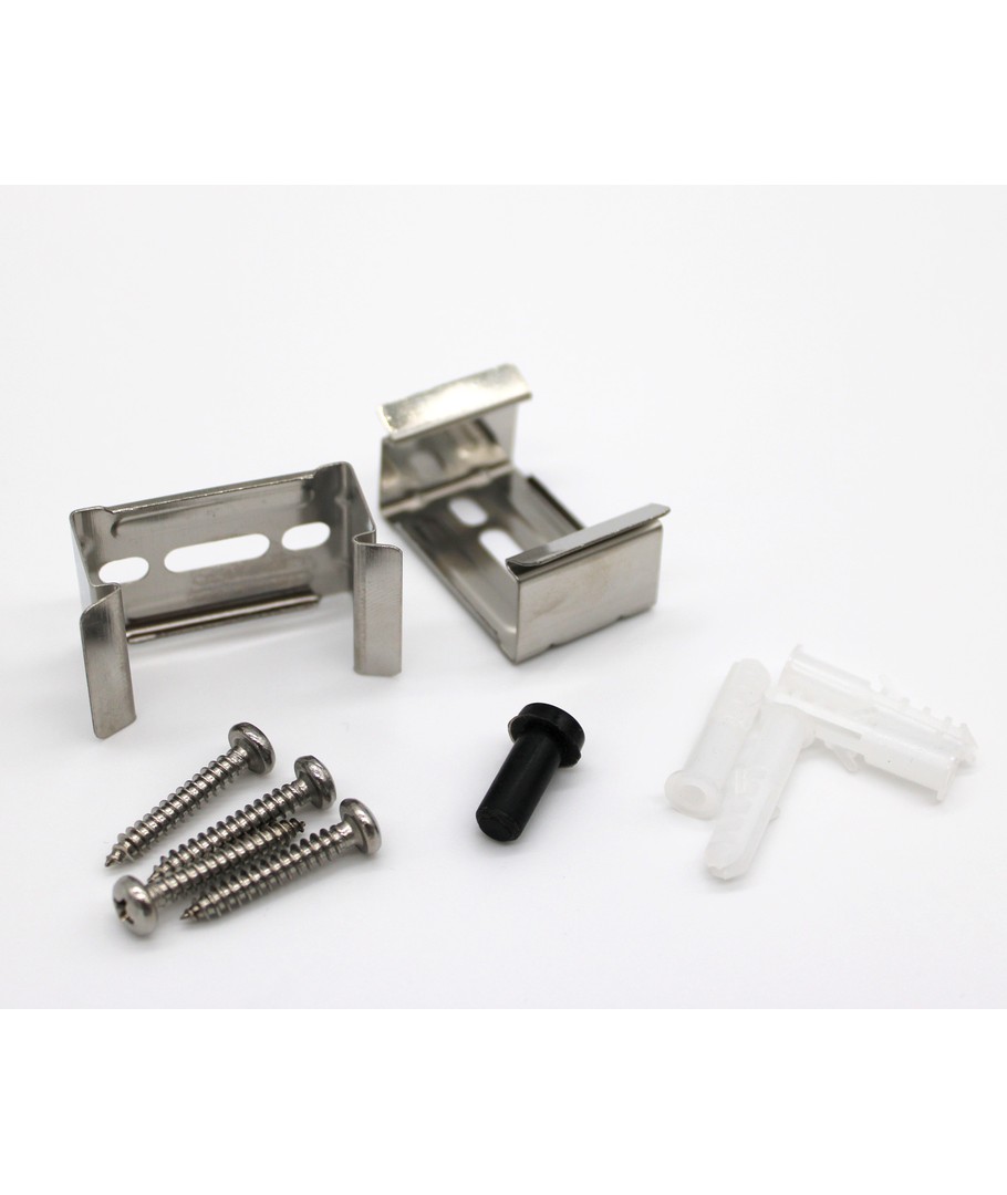 Monteringsklämmor, skruvar och ändstycke ingår.