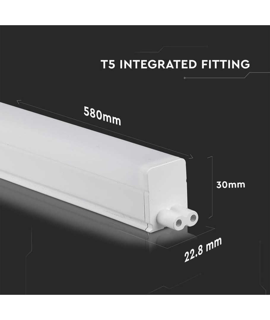 Mätningar på 580 x 30 x 22.8 mm gör denna armatur kompakt och lätt att installera. Notera att den har en IP20-klassificering och är därför inte vattentät. Armaturen levereras med en integrerad ljuskälla, vilket gör att du slipper besväret med separata glödlampor.