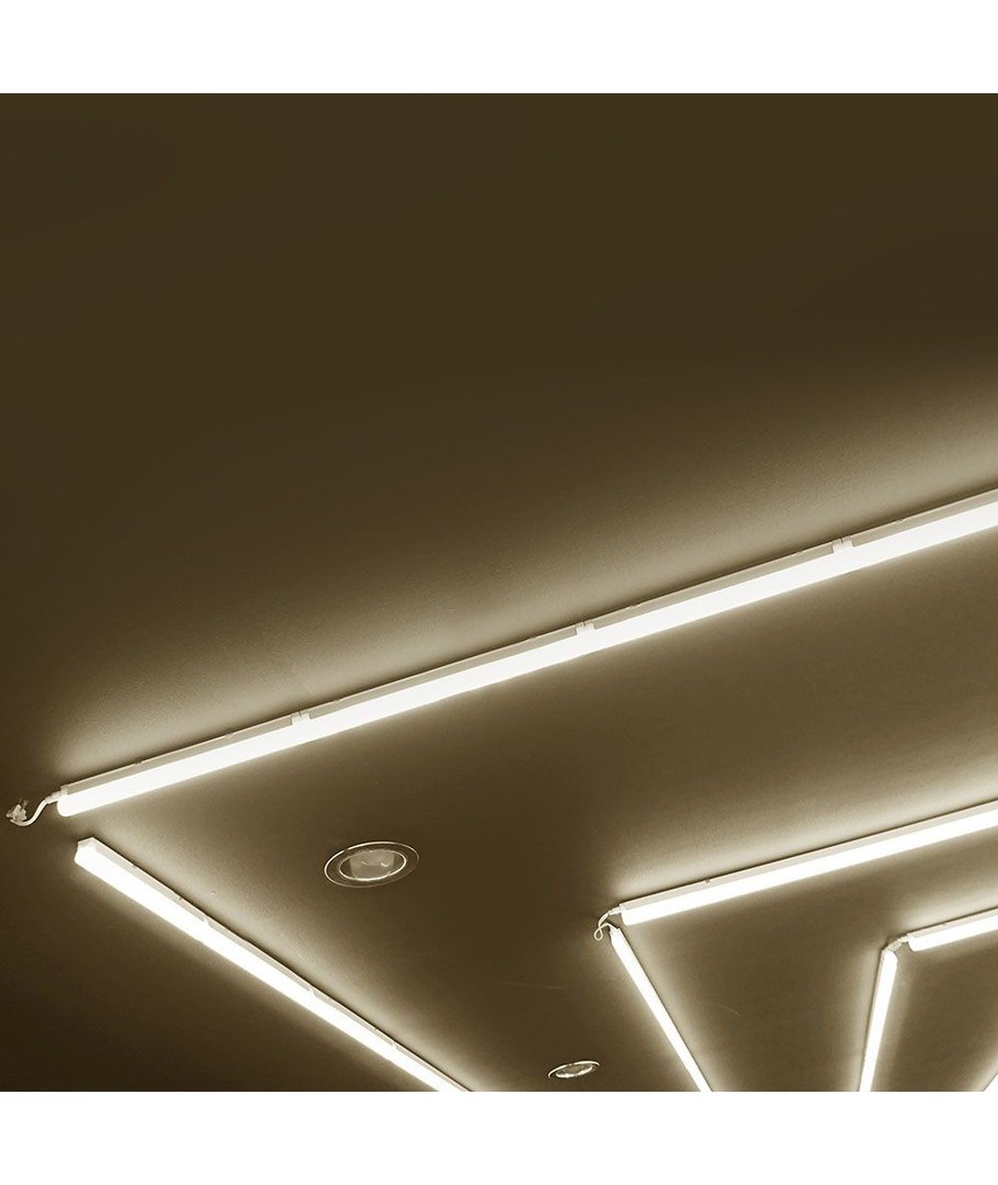 Den enkla seriekopplingen ger armaturen många användningsområden.Den kan till exempel också användas som en snygg lösning i troldtekt tak. I garaget, verkstaden eller festsalen.