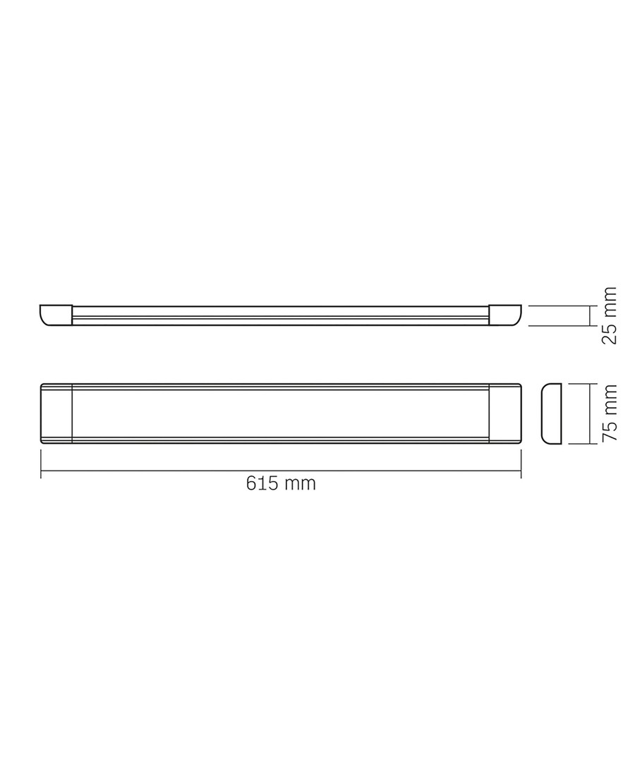 Dimensioner på armaturen är 75 x 615 x 25 mm, vilket gör den lätt att placera i olika miljöer. Den har IP20-klassning, vilket innebär att den ej är vattentät och därför bör användas i torra utrymmen. Med en integrerad ljuskälla och 3 års fabriksgaranti, är detta en pålitlig och långvarig lösning för dina belysningsbehov.