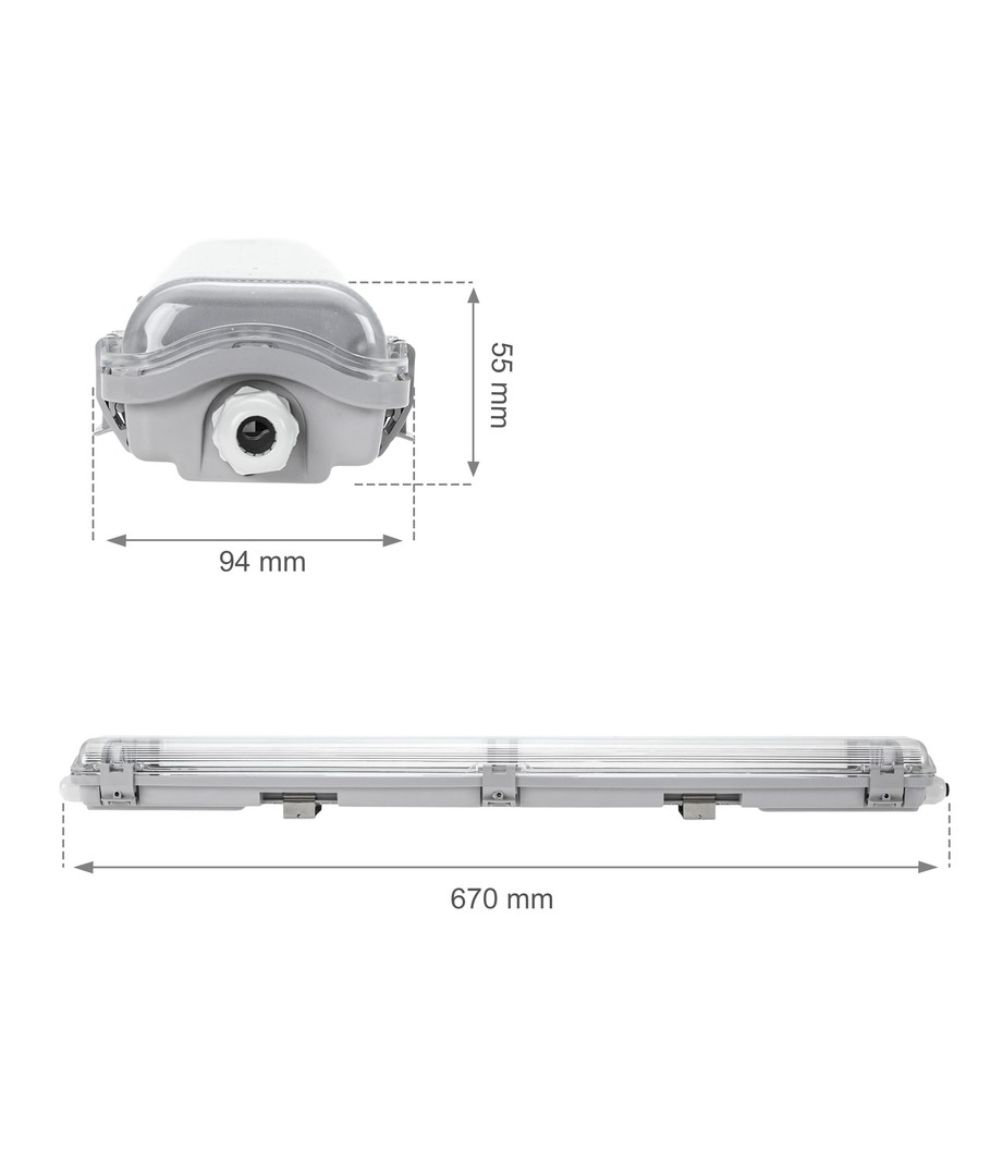 Med måtten 710 x 63 x 90 mm är denna armatur mångsidig och passar i en rad olika miljöer, från garage och källare till utomhusområden där vädret kan vara oförutsägbart.