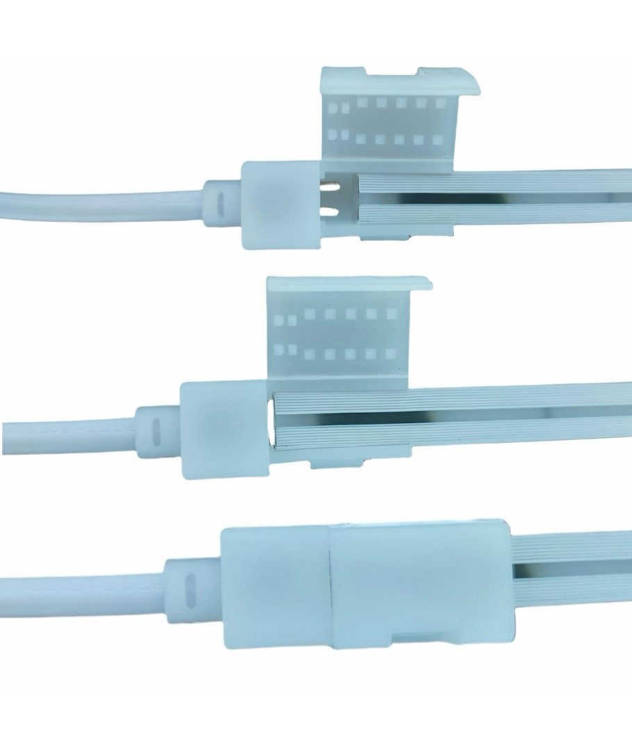Skarvarna vid kontakten och ändstycket ska tätas med silikonlim eller krympslang för att uppnå IP67-klassning innan produkten tas i bruk.