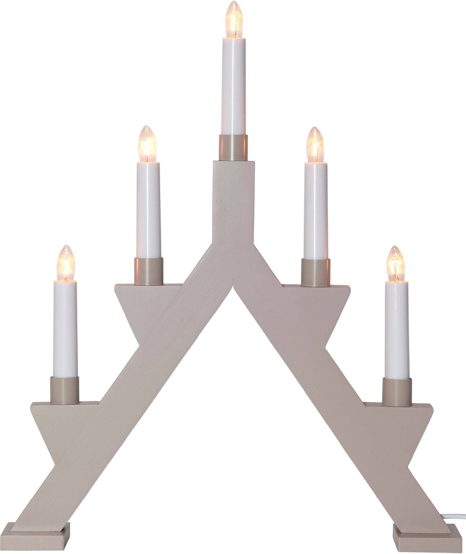 En smuk 5-armet Julelysestage i grå med 5 hvide kertelys i varm hvid. Leveres med tilslutningsledning med afbryder på.