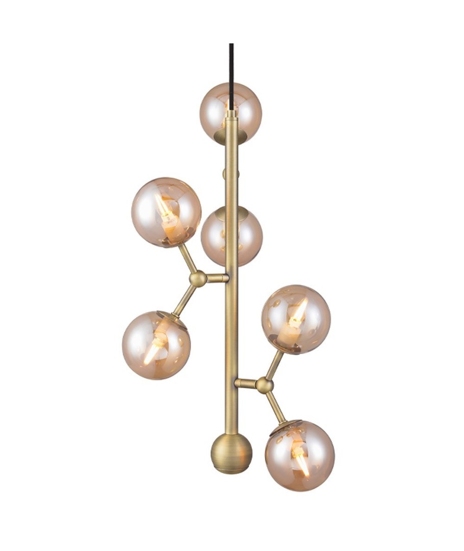 Denna har en borstad, mattlackerad och antik mässingsram kombinerat med ett fantastiskt bärnstensfärgat glas.