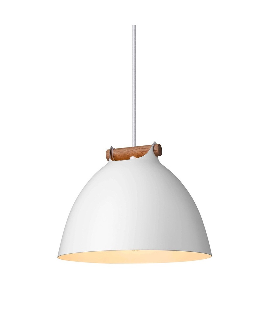 Med en design som förenar vit och trä, skapar denna lampa en harmonisk balans mellan det naturliga och det moderna. Dess minimalistiska uttryck gör att den passar in i de flesta hem och blir ett snyggt tillskott över ett matbord, i vardagsrummet eller ett annat rum som behöver belysas.