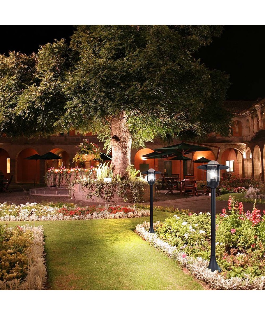 Med denna svarta trädgårdslampa får du en stilfull och hållbar lösning för att lysa upp din uteplats.