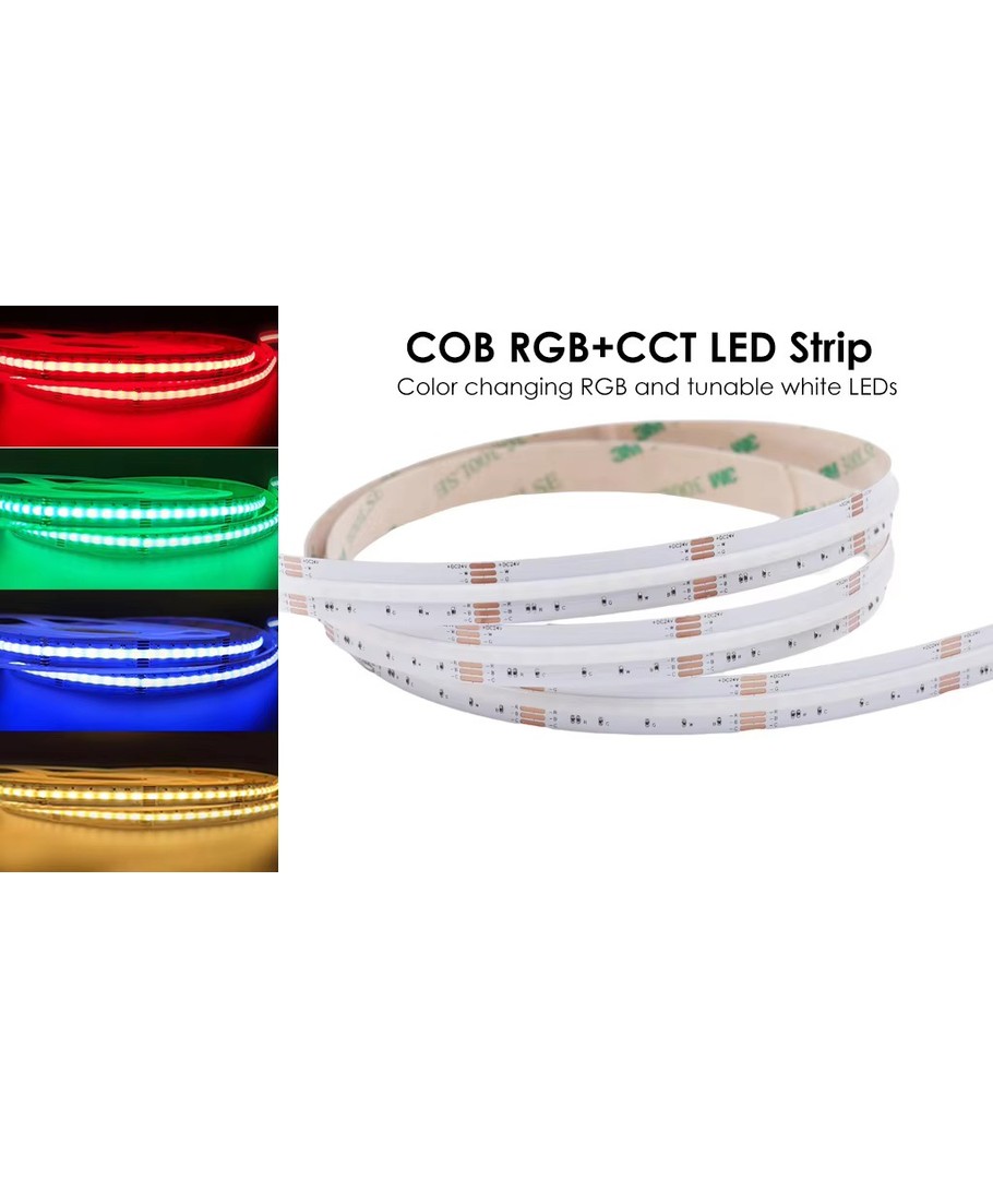 Denna RGB+CCT COB-LED strip är framtagen för dig som uppskattar både praktisk belysning och estetik. Den ger dig möjligheten att skapa den atmosfär du önskar, oavsett om du vill ha ett varmt eller kallt ljus, eller kanske ett livligt färgspektra. Installera och experimentera för att hitta precis rätt belysning för ditt hem eller arbetsplats.