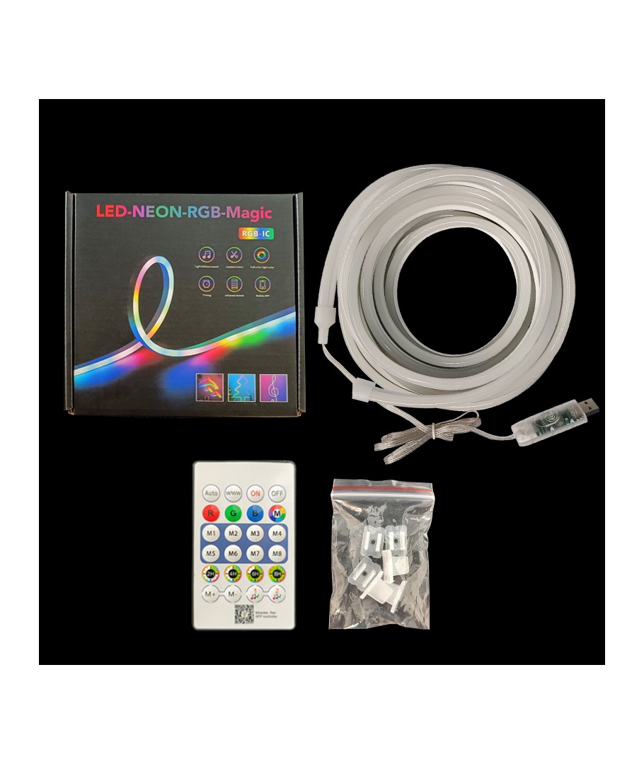 Oavsett om du vill lägga till färgglad belysning i vardagsrummet, köket eller sovrummet, ger detta neonflex set dig möjlighet att skapa unika ljusmönster och stämningar. Med enkel installation och användarvänliga kontroller är det den perfekta lösningen för att lysa upp din vardag.