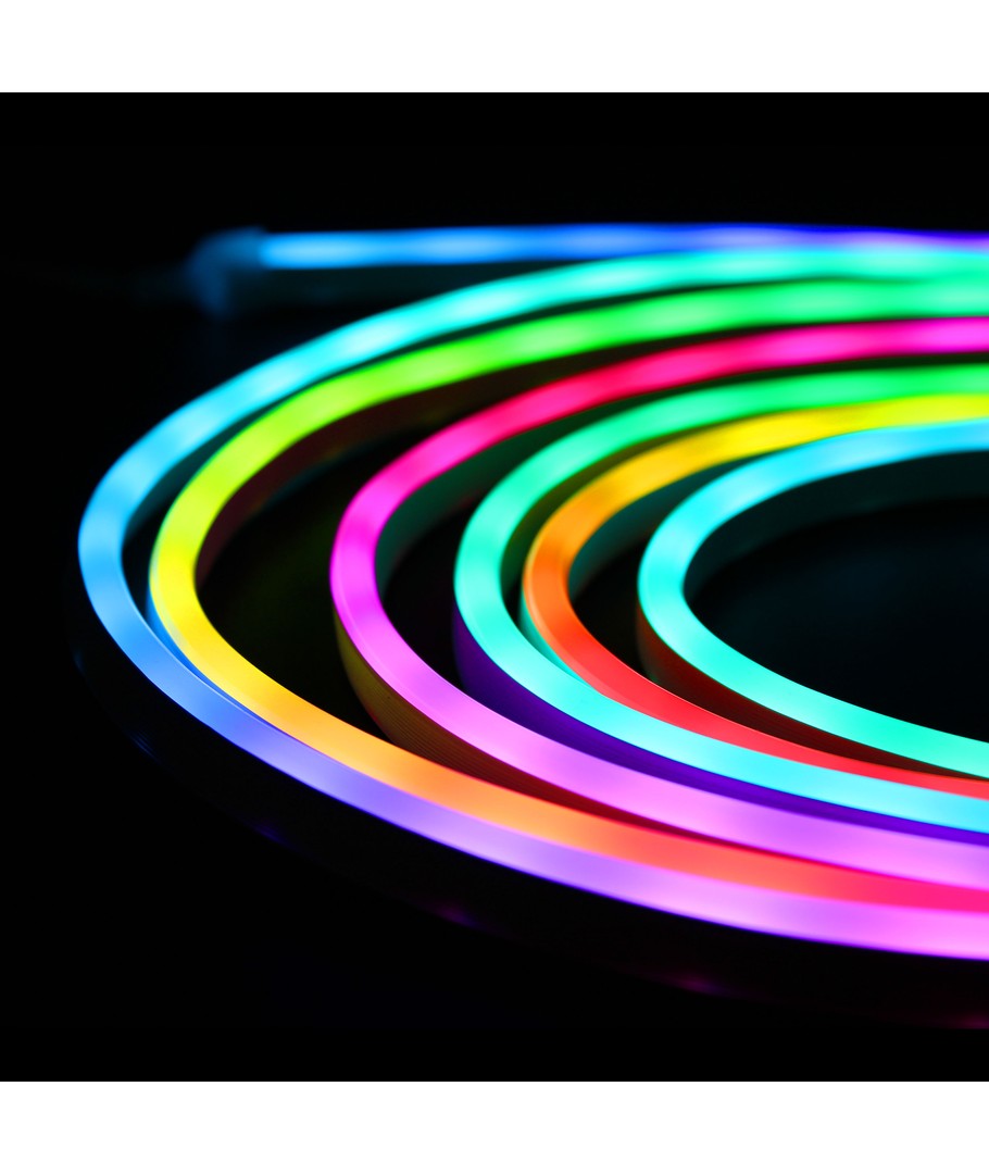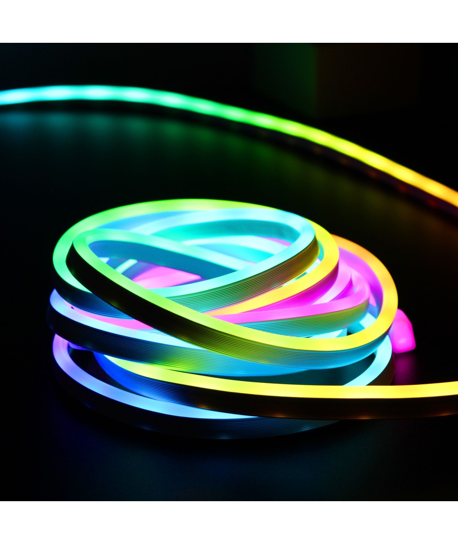 Upplev en värld av färger med vår 3W/m RGBIC 7x14 Neon Flex strip - en 5 meter RGBIC neon flex som ger ljus och liv till vilket rum som helst med sitt dynamiska färgspel och flexibla design.