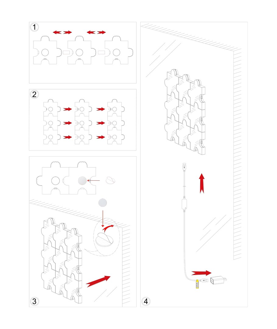 Skapa en dynamisk och färgglad atmosfär i ditt hem med detta flexibla belysningsset. Den består av sex justerbara ljusskenor som enkelt kan väggmonteras för att skapa unika designmönster.