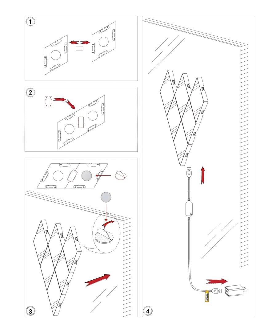 Skapa en dynamisk och färgglad atmosfär i ditt hem med detta flexibla belysningsset. Den består av sex justerbara ljusskenor som enkelt kan väggmonteras för att skapa unika designmönster.