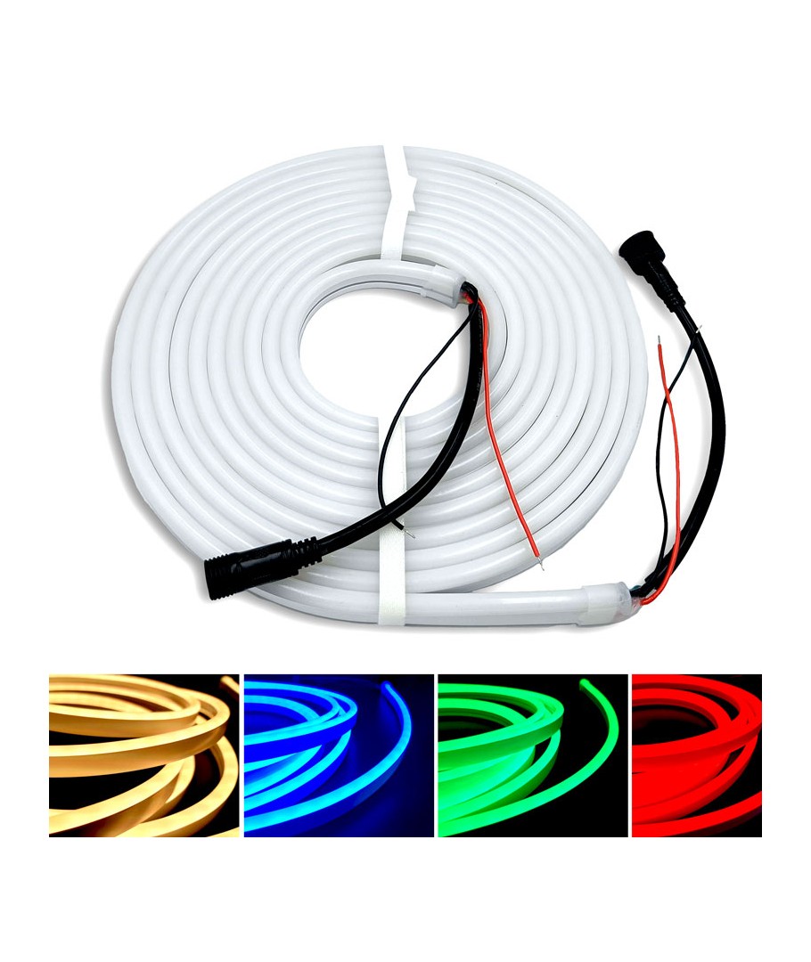 Oavsett om du vill lysa upp ett arbetsområde, skapa en mysig atmosfär i ditt hem eller tillföra dynamisk belysning utomhus, erbjuder denna RGB+WW Neon flex strip en pålitlig och anpassningsbar lösning.